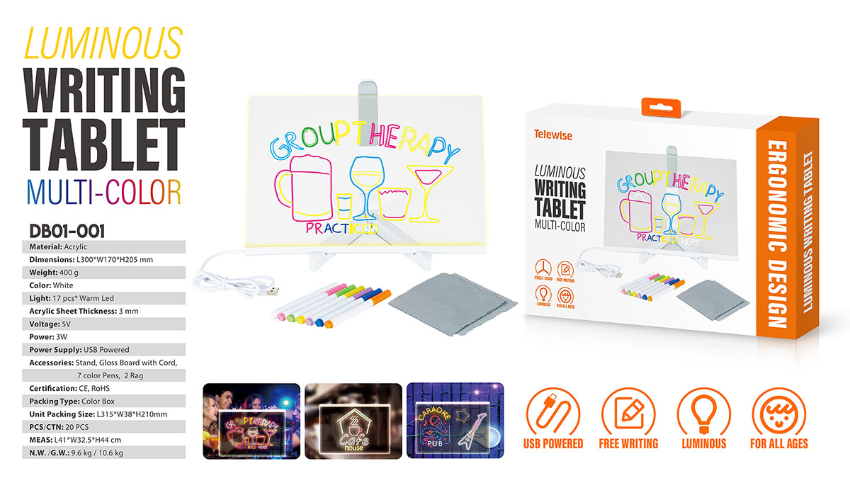 Clear acrylic dry erase board with light, classic, fashionable and clear appearance design, perfect for the office, home, or any other environment, glow memo the fashion design adds a unique charm to your desktop. As a note glass led board, write down your message.