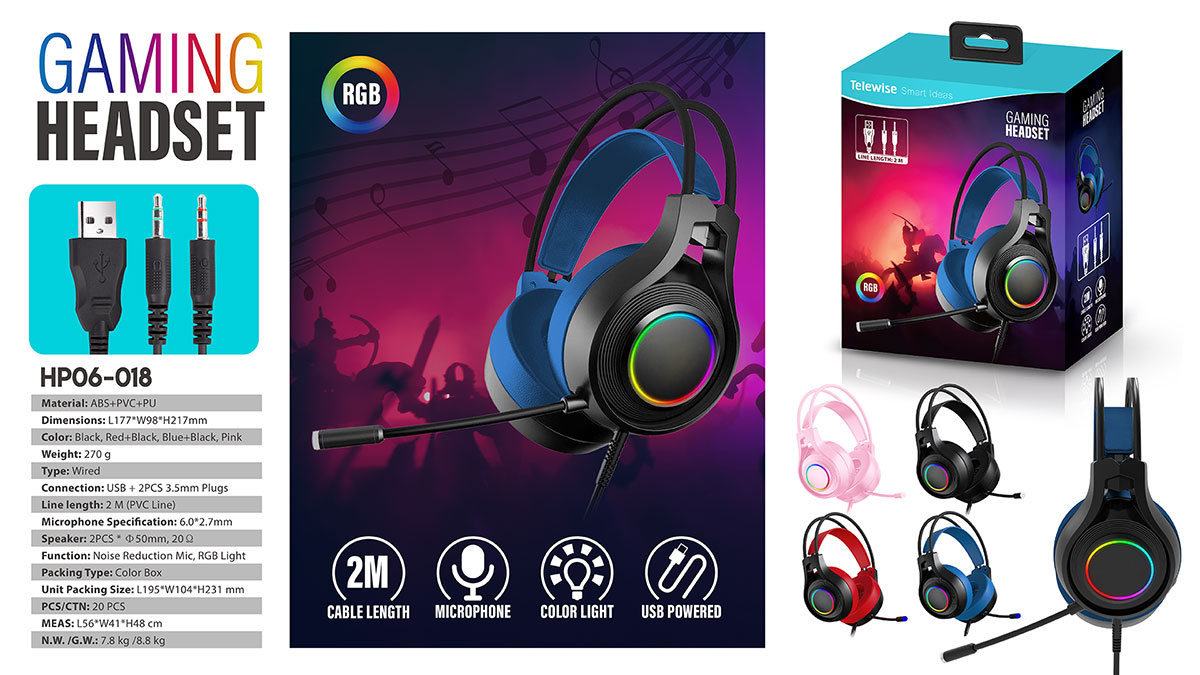 Professional gaming headset with RGB Light, with deliver superior audio performance, gaming headset can generate a virtual surround sound experience to create distance and depth that enhances any gaming, movie or music experience.