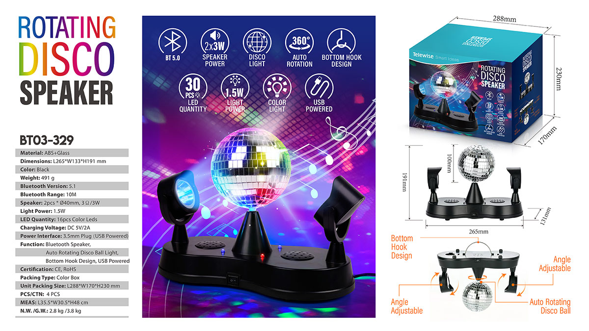 Our amazing DISCO ball light! It can rotate on its own and project gorgeous ambient light rays, creating a lively atmosphere. Available in two versions: one with a Bluetooth speaker for a dual audio-visual treat, and the other as a pure ambient light. Either way, it's bound to light up your parties and bring you a wonderful experience!
