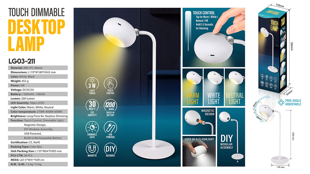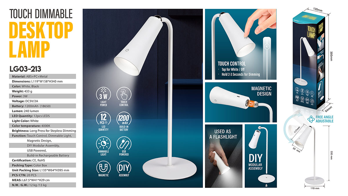 The Lamp features adjustable brightness to meet your various lighting needs. What's more, the lamp and its stand are connected by magnetic coupling, allowing you to easily take the lamp off and use it as a flashlight independently. A truly versatile lighting solution for you!