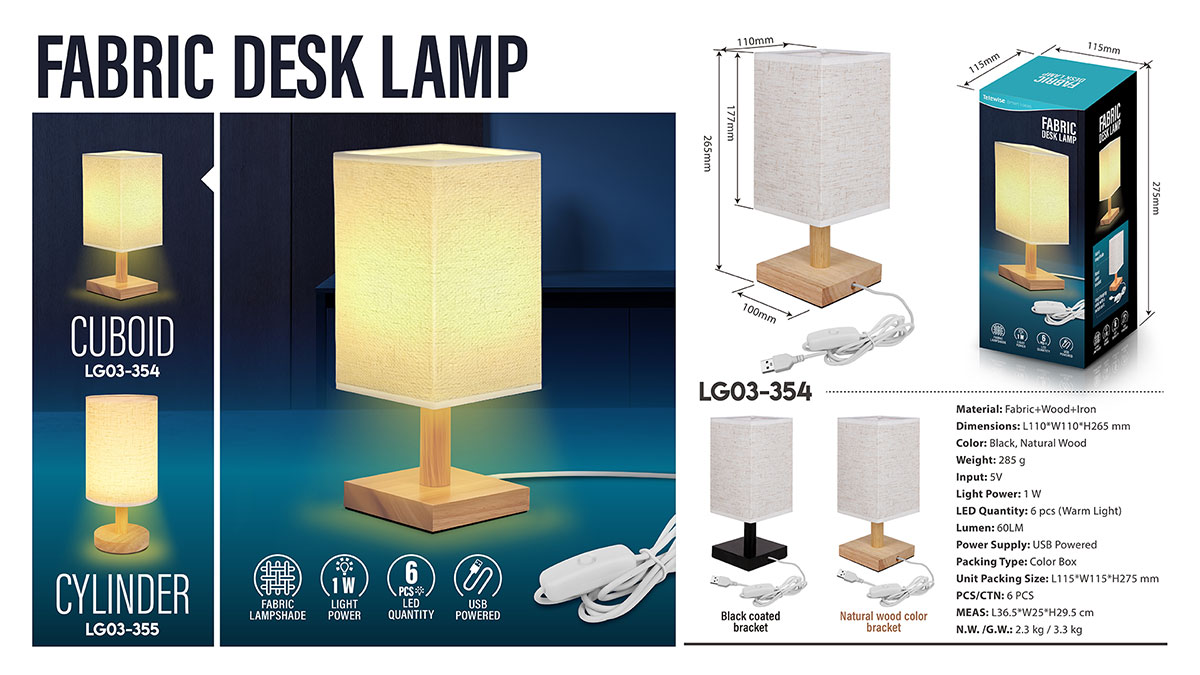The elegant, stylish look of this table lamp enhances the beauty of your home, with an open top cloth cover in beige linen hovering over a small solid wood base.
