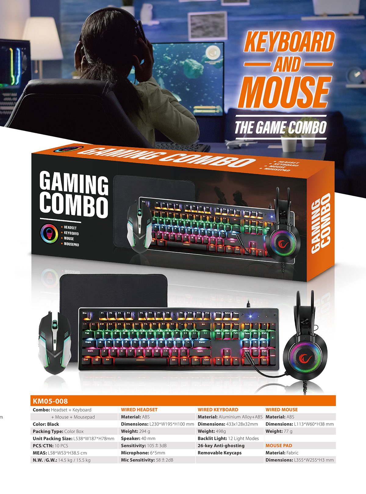 Gaming mouse and keyboard and around the head gaming headset and mouse mat complete starter pack all in one box.