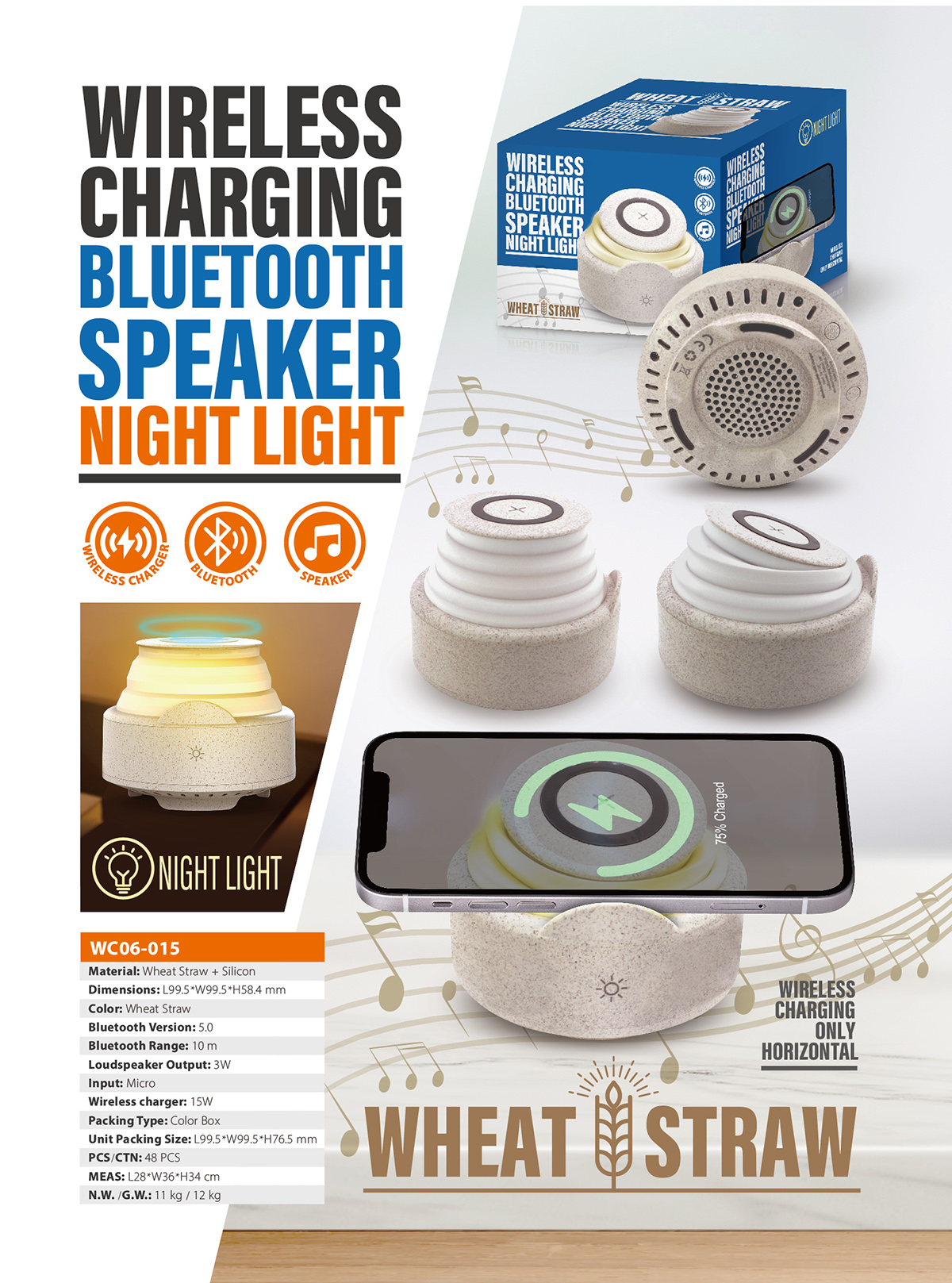 Wheat straw material, Universal charging compatibility with any Qi enabled device