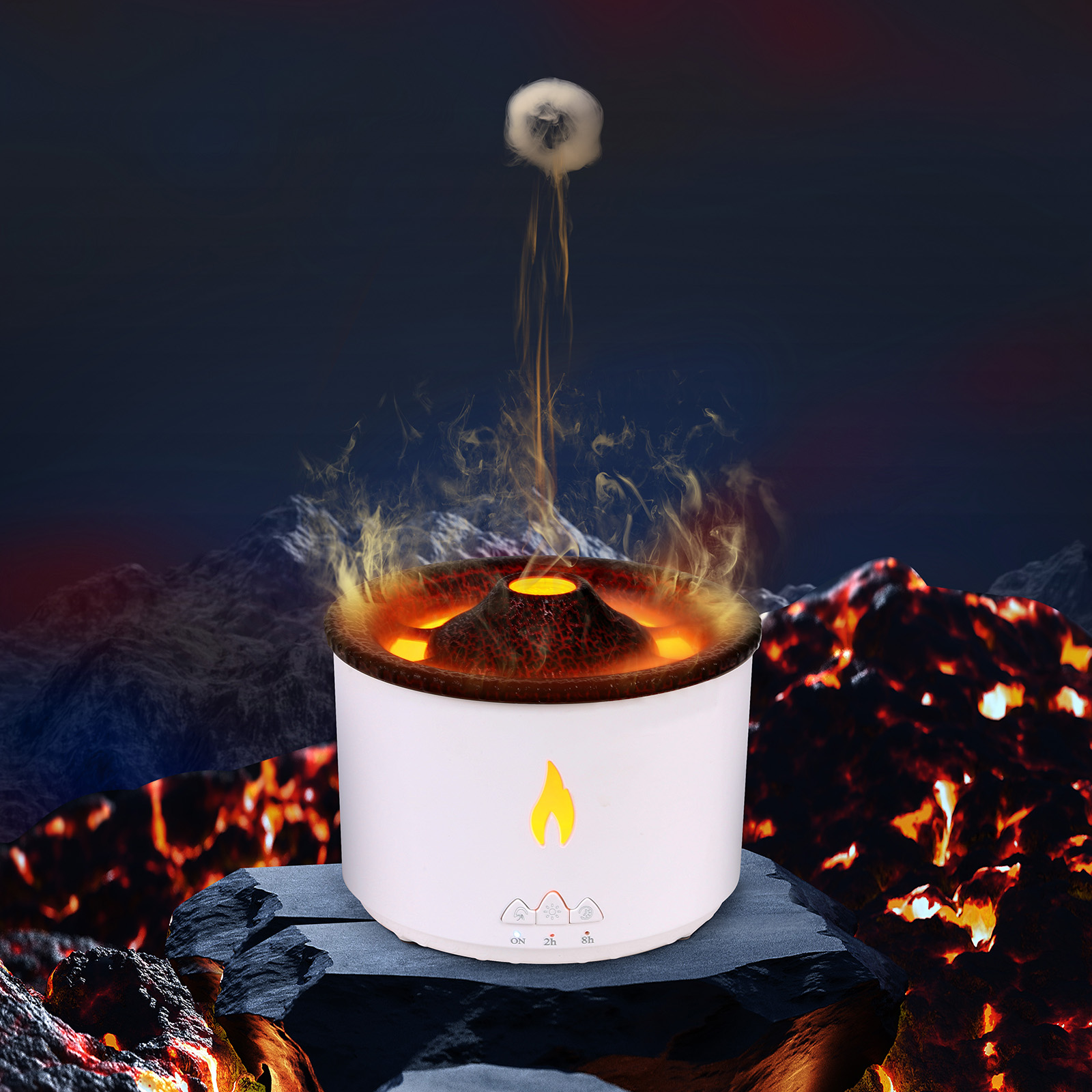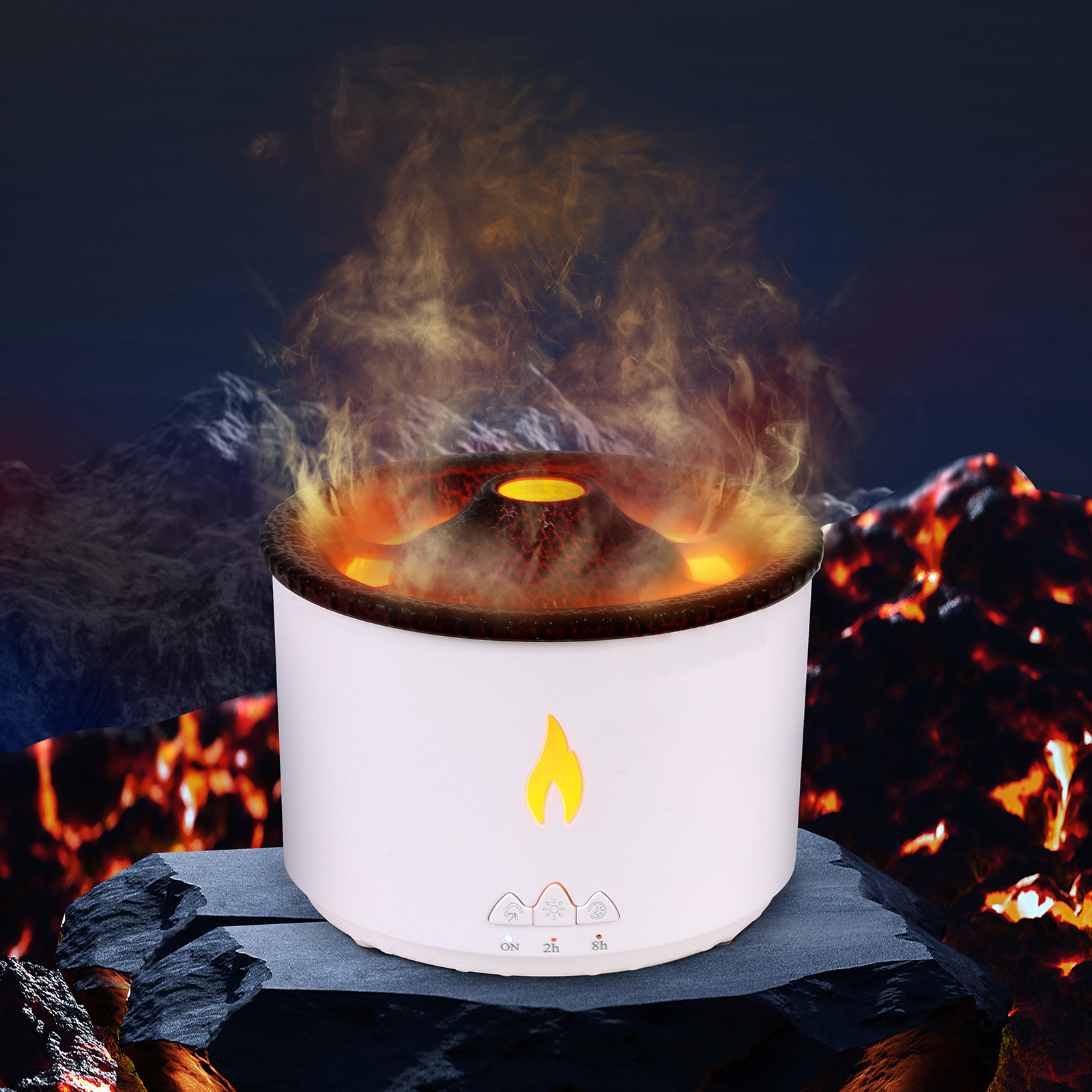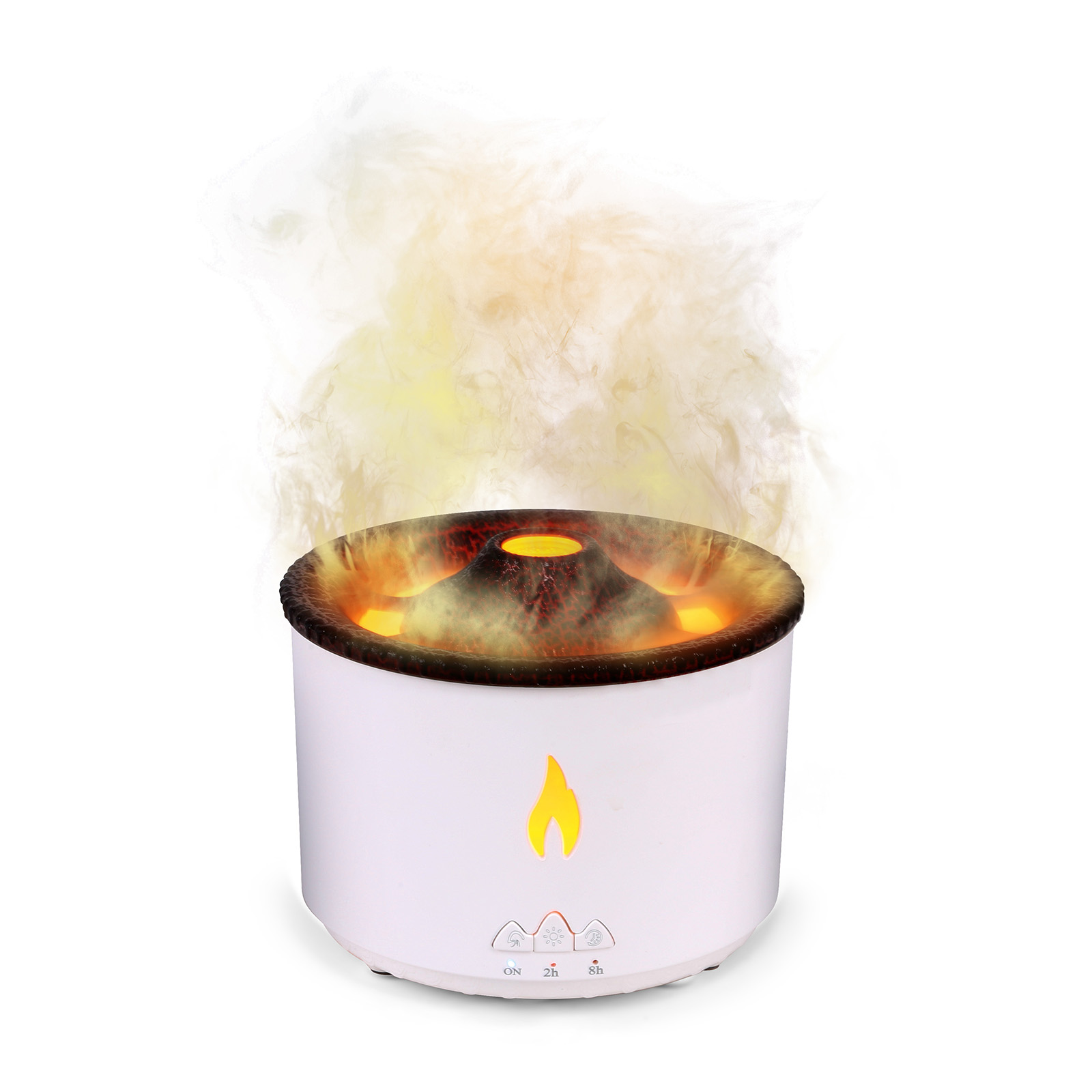 EAH-055With the water tank, the cool mist humidifiers can provide you with comfortable misting air in atomization modes, flameand volcano.The flame mode burns in the air like fog, and the volcano mode emits fog like a volcanic eruption,you enjoying pleasant scent for large room, bedroom and office.