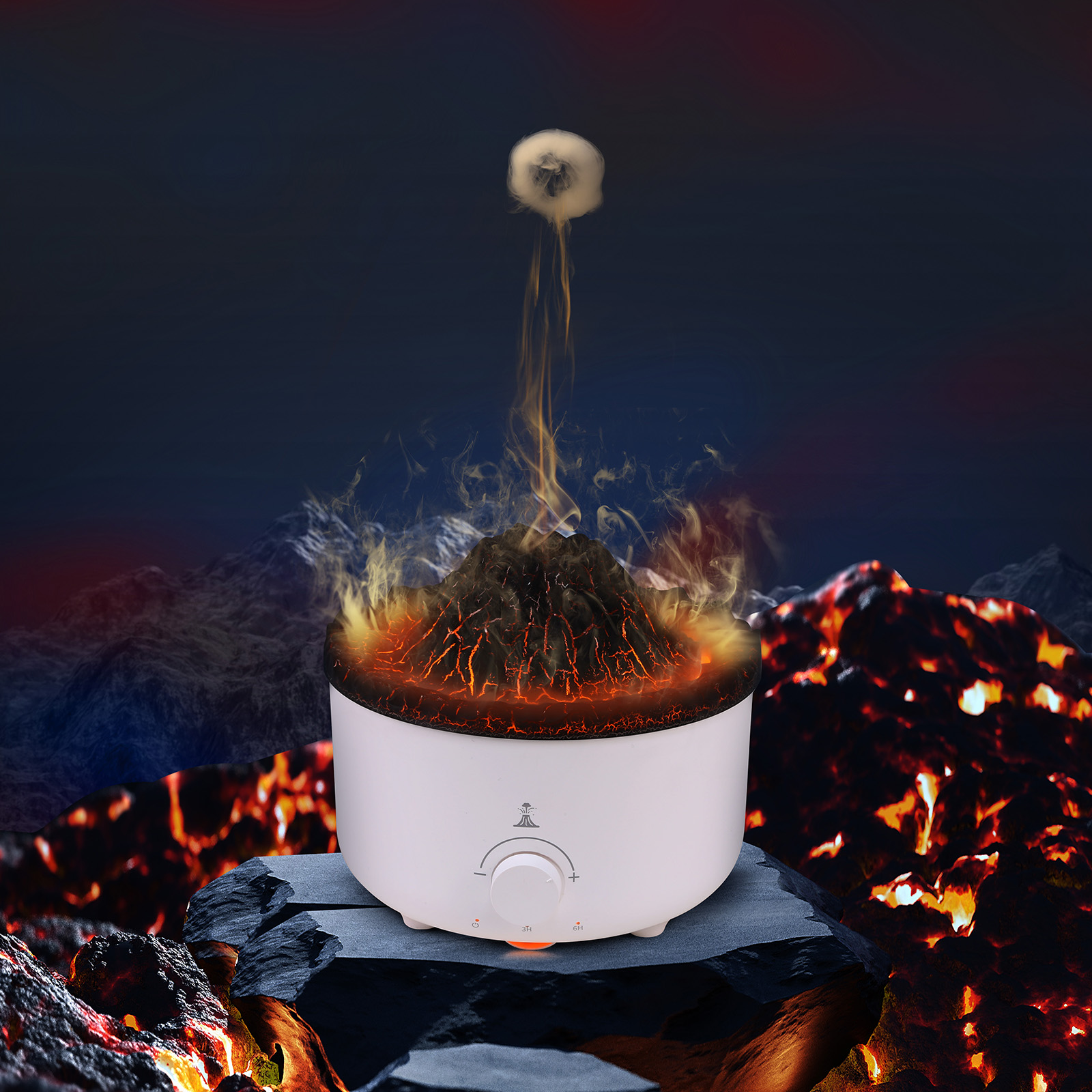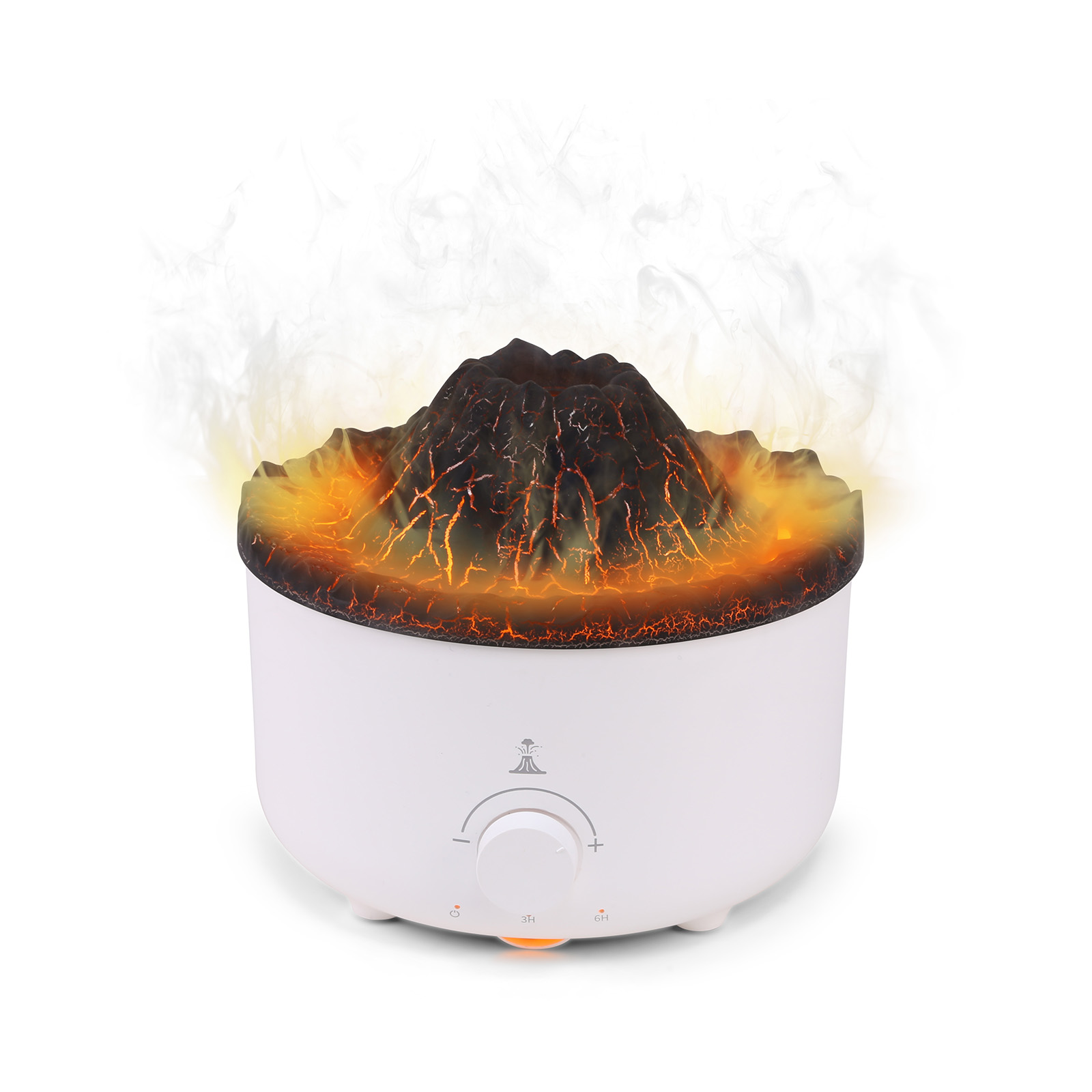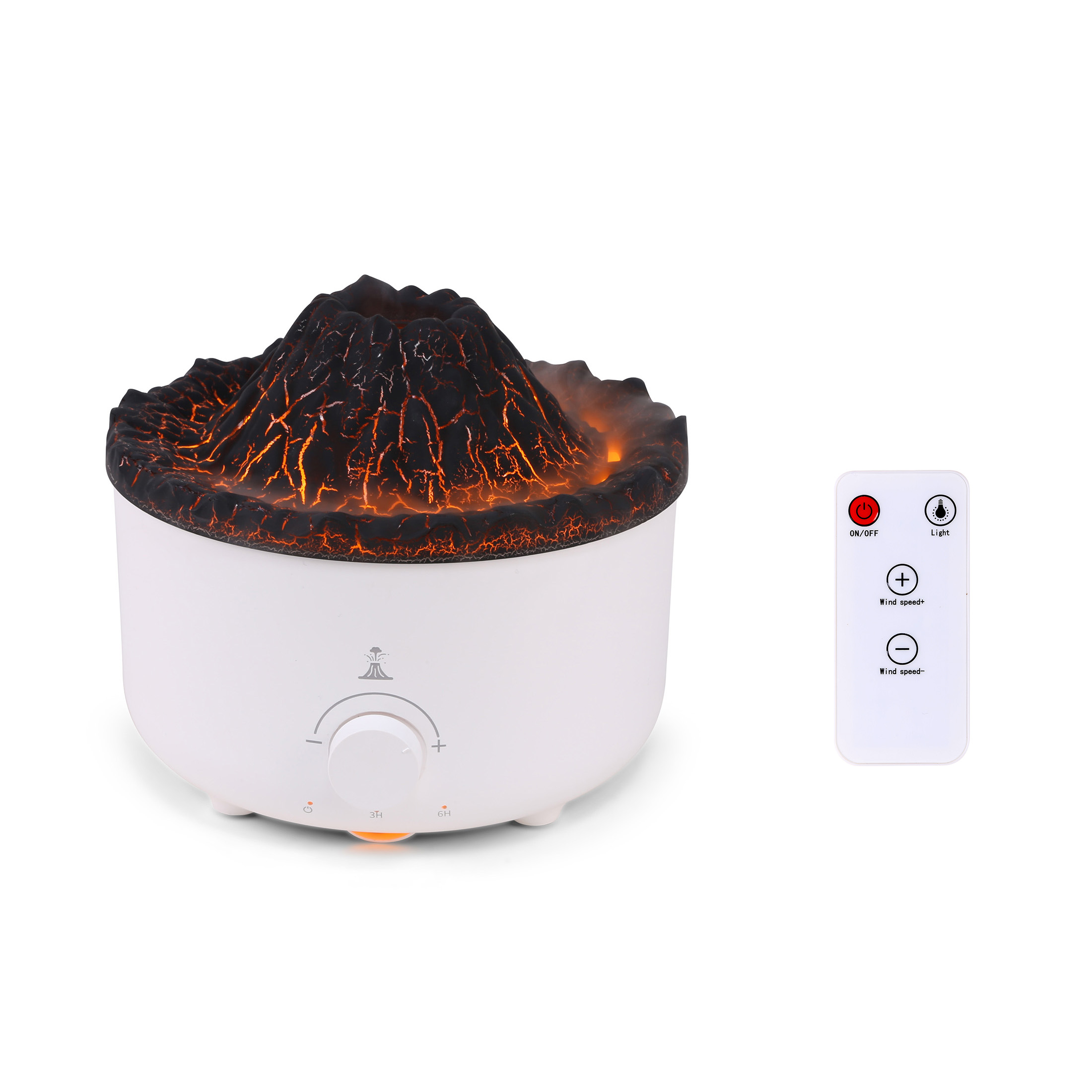 EAH-056With the water tank, the cool mist humidifiers can provide you with comfortable misting air in atomization modes, flameand volcano.The flame mode burns in the air like fog, and the volcano mode emits fog like a volcanic eruption,you enjoying pleasant scent for large room, bedroom and office.