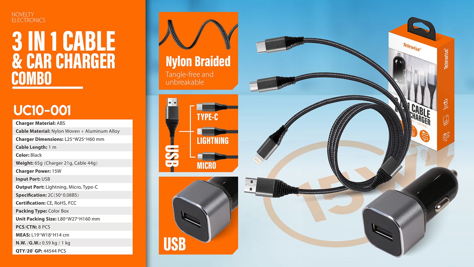 UC10-001The Best Charging Partner in Car for Phone, The tiny body fits most car cigarette lighters. 3 in 1 Charger Cable: The multi charging cable is unique brings you convenience and sharing feeling. 3 charging tips in 1 cable make the phone charger simple, lightweight and portable. You can carry this multi charger cable anywhere or sharing with friends.