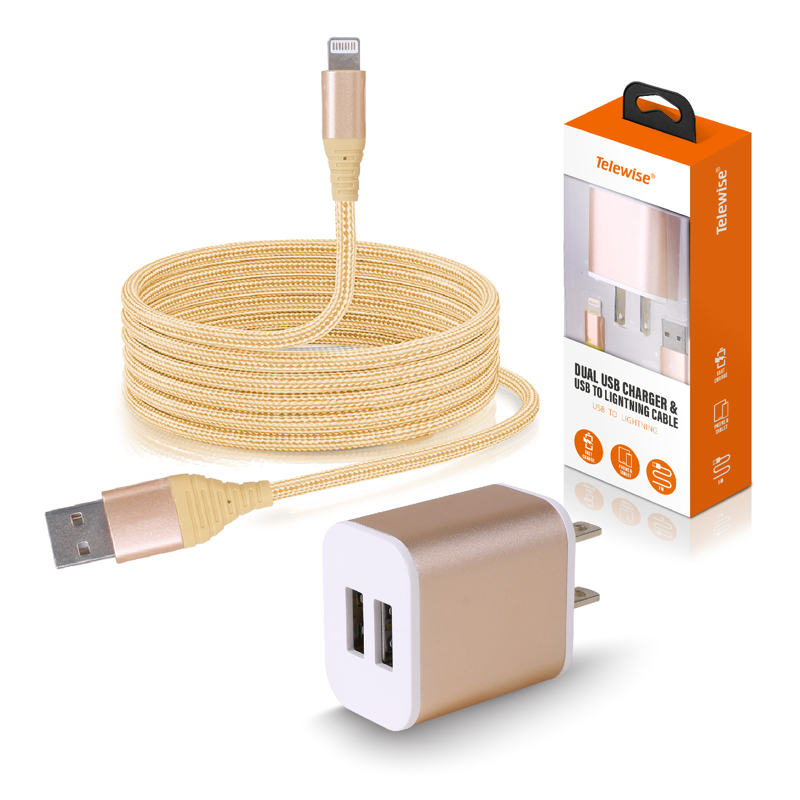 Dual USB Charger & USB to Ligntning Cable Combo
