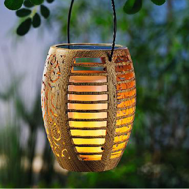 Bamboo Grain Solar Outdoor Light with Handle