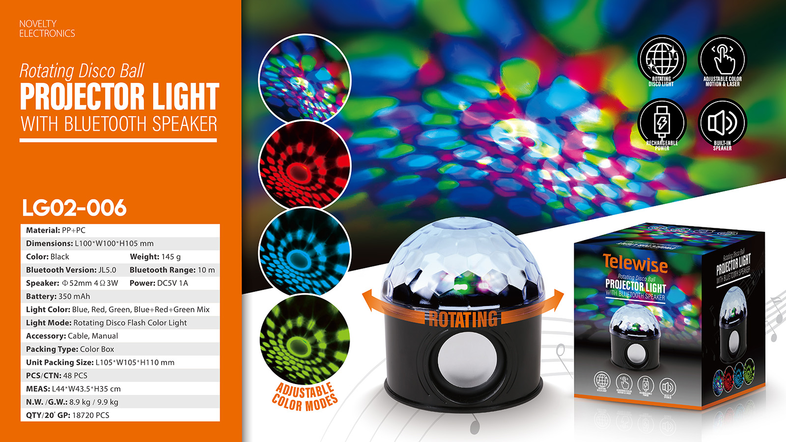 - Light Mode : Rotating Disco Flash Color Light
