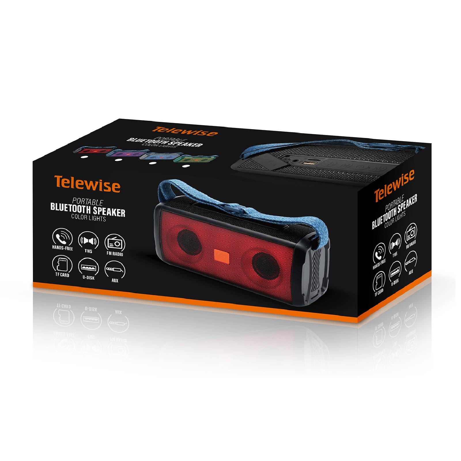 - Function : Bluetooth, FM Radio, TF Card, U-disk, AUX, TWS, Hands-free Call, Color Light