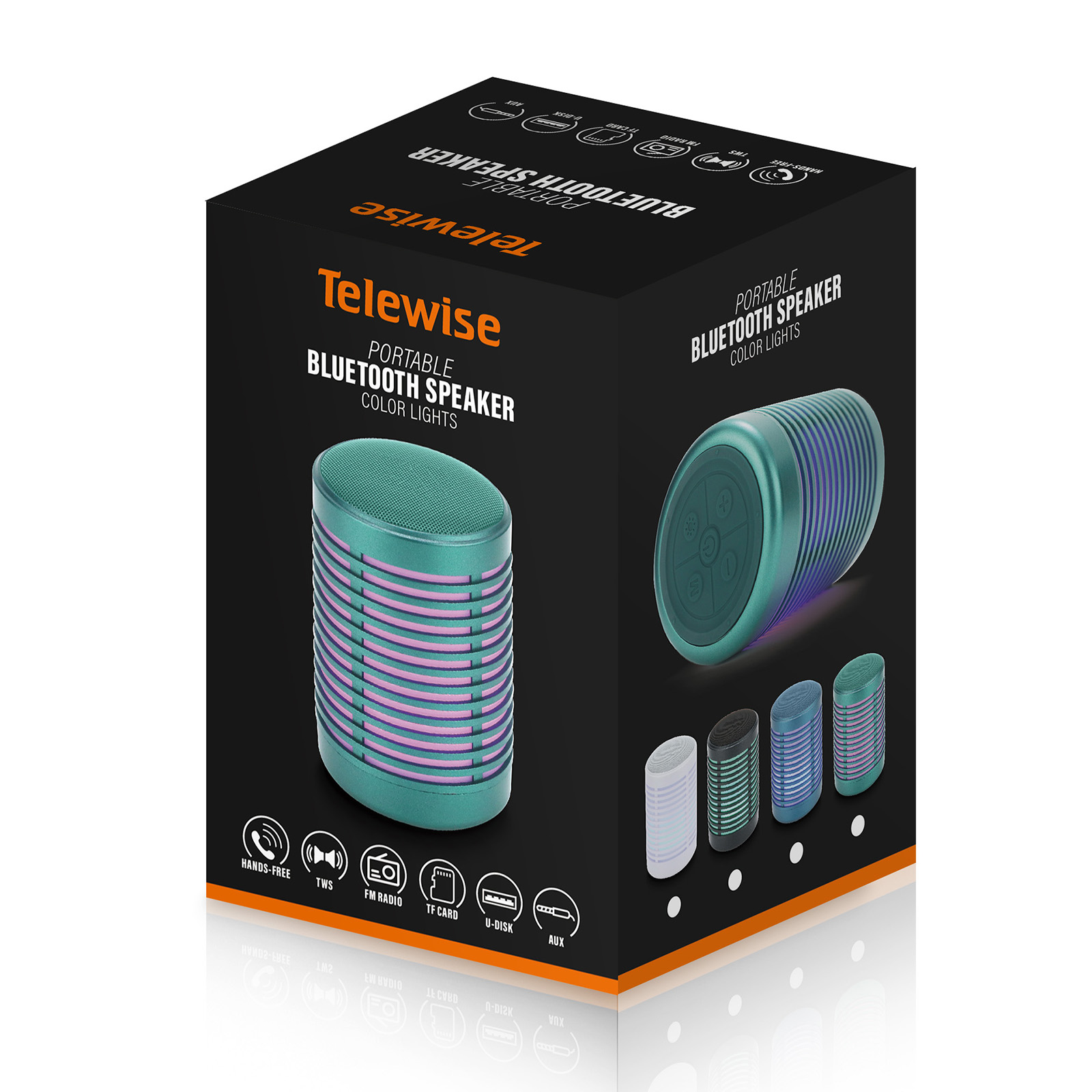 - Function : Bluetooth, FM Radio, TF Card, U-disk, AUX, TWS, Hands-free Call, Color Light
