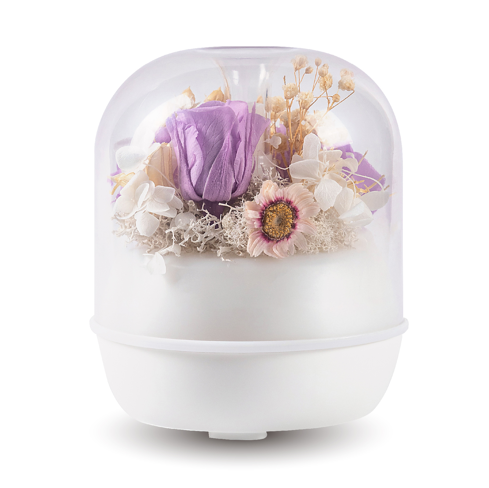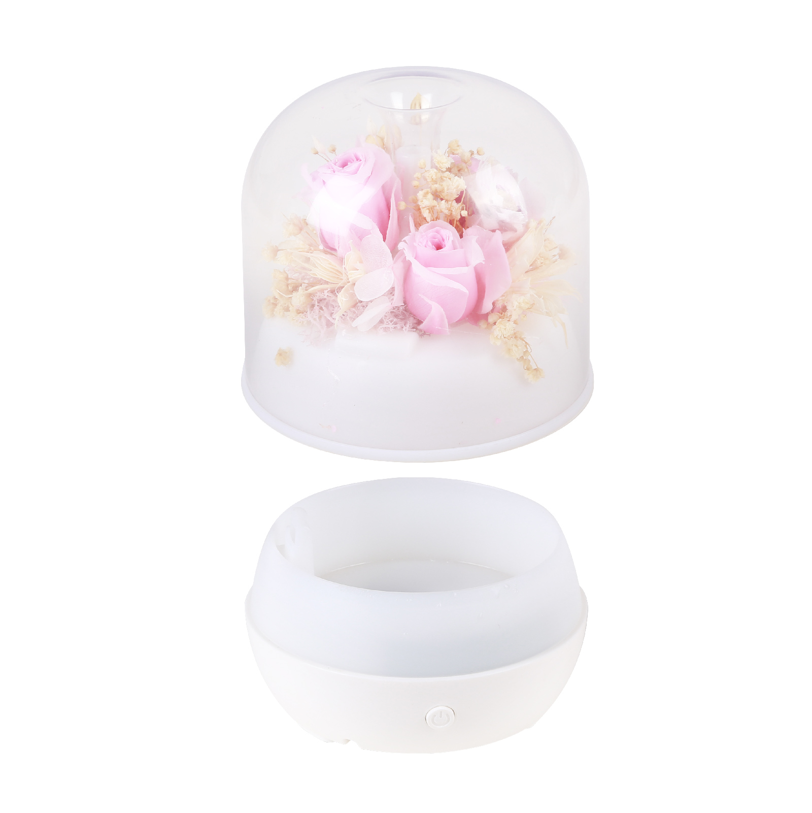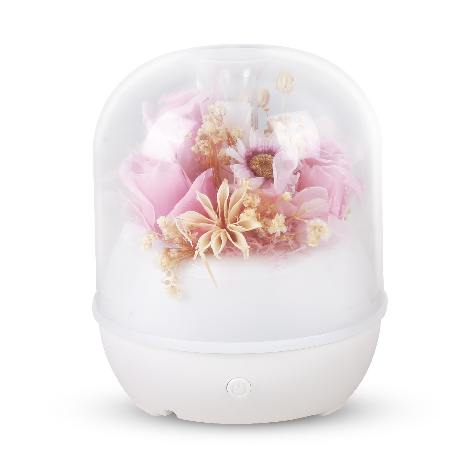 EAH-068Aroma diffuser, preserved flower lamp, cool mist humidifier, night lights are integrated to a smart humidifier. The aromatherapy diffuser fills your space with a lovely fragrance, portable for home, yoga, office, spa, bedroom.... The flowers in the lid will not wither while maintaining the softness and shape of the flesh flowers. They’re perfect decorations for the diffuser as well as your family. Perfect gift for family and friends who love aromatherapy.