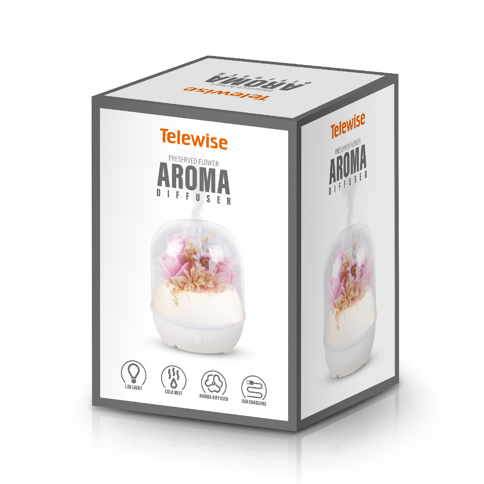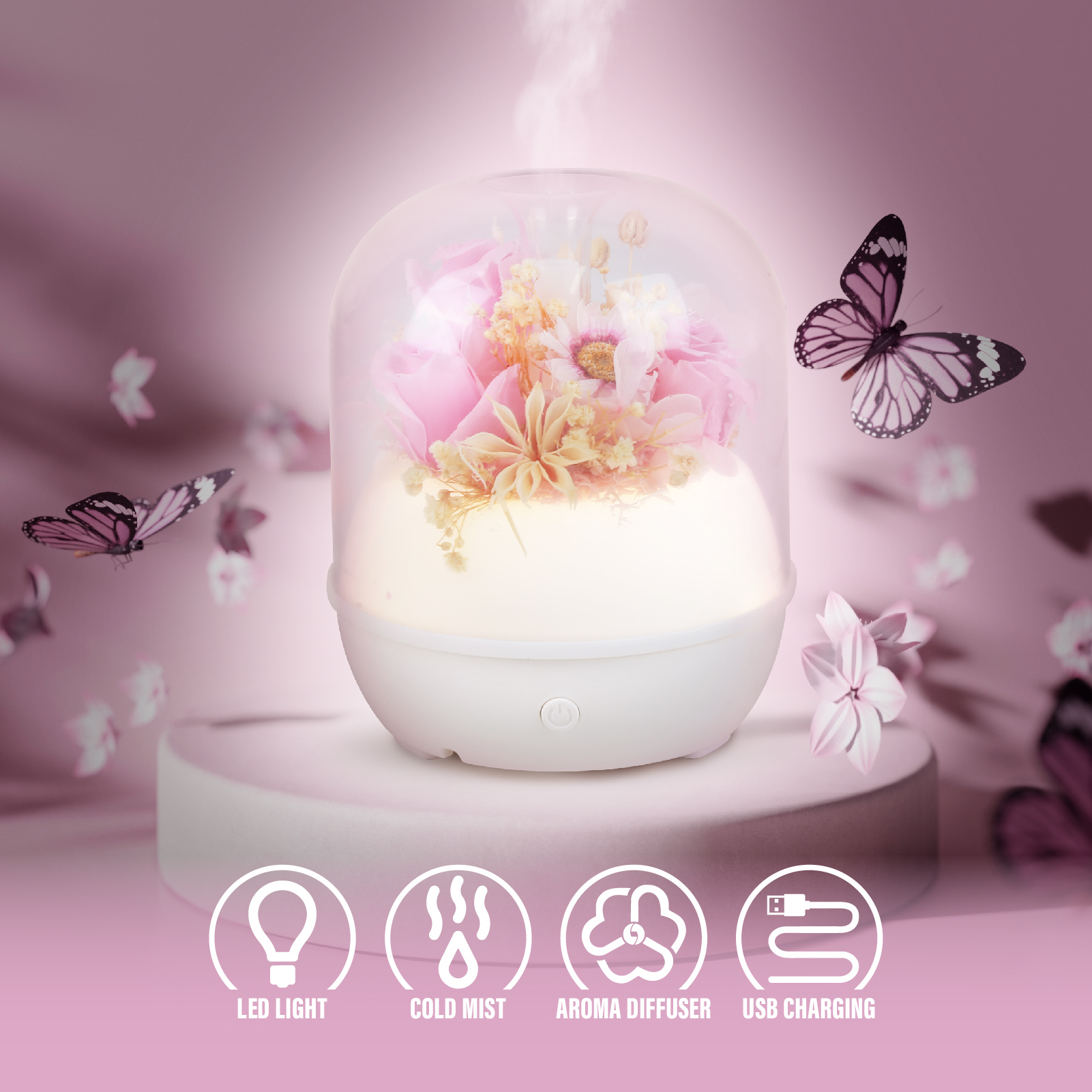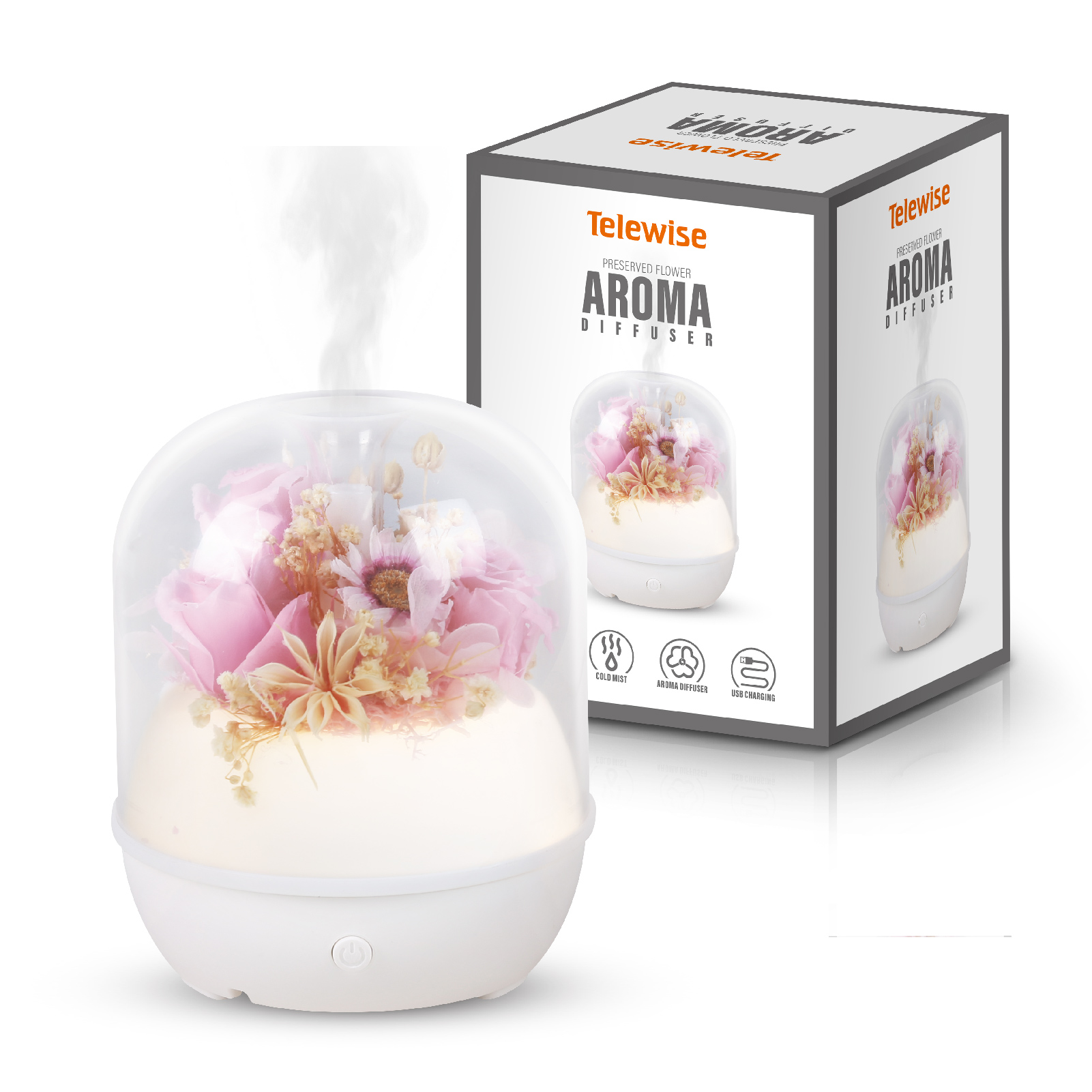 EAH-068Aroma diffuser, preserved flower lamp, cool mist humidifier, night lights are integrated to a smart humidifier. The aromatherapy diffuser fills your space with a lovely fragrance, portable for home, yoga, office, spa, bedroom.... The flowers in the lid will not wither while maintaining the softness and shape of the flesh flowers. They’re perfect decorations for the diffuser as well as your family. Perfect gift for family and friends who love aromatherapy.