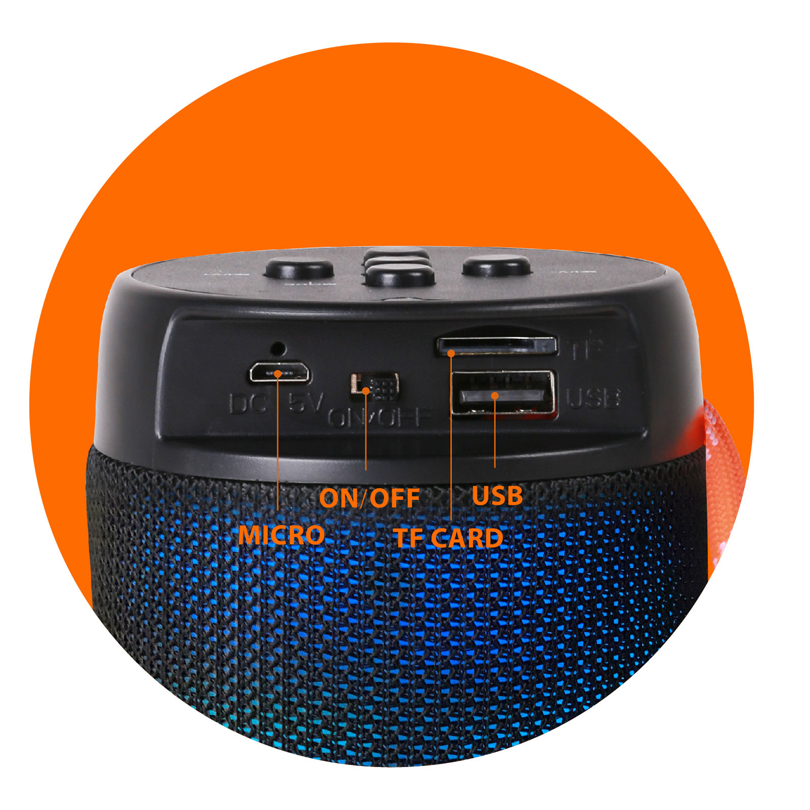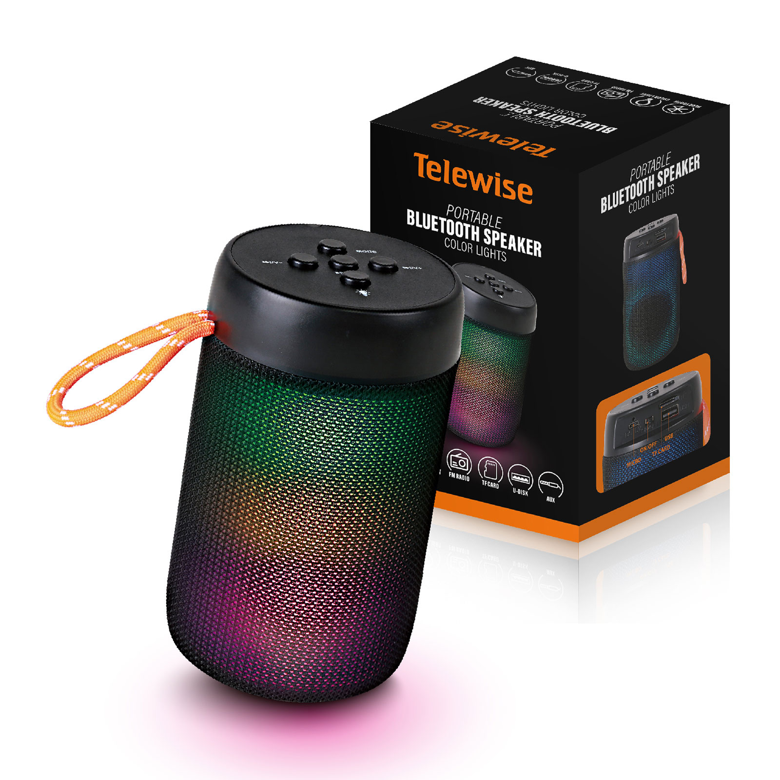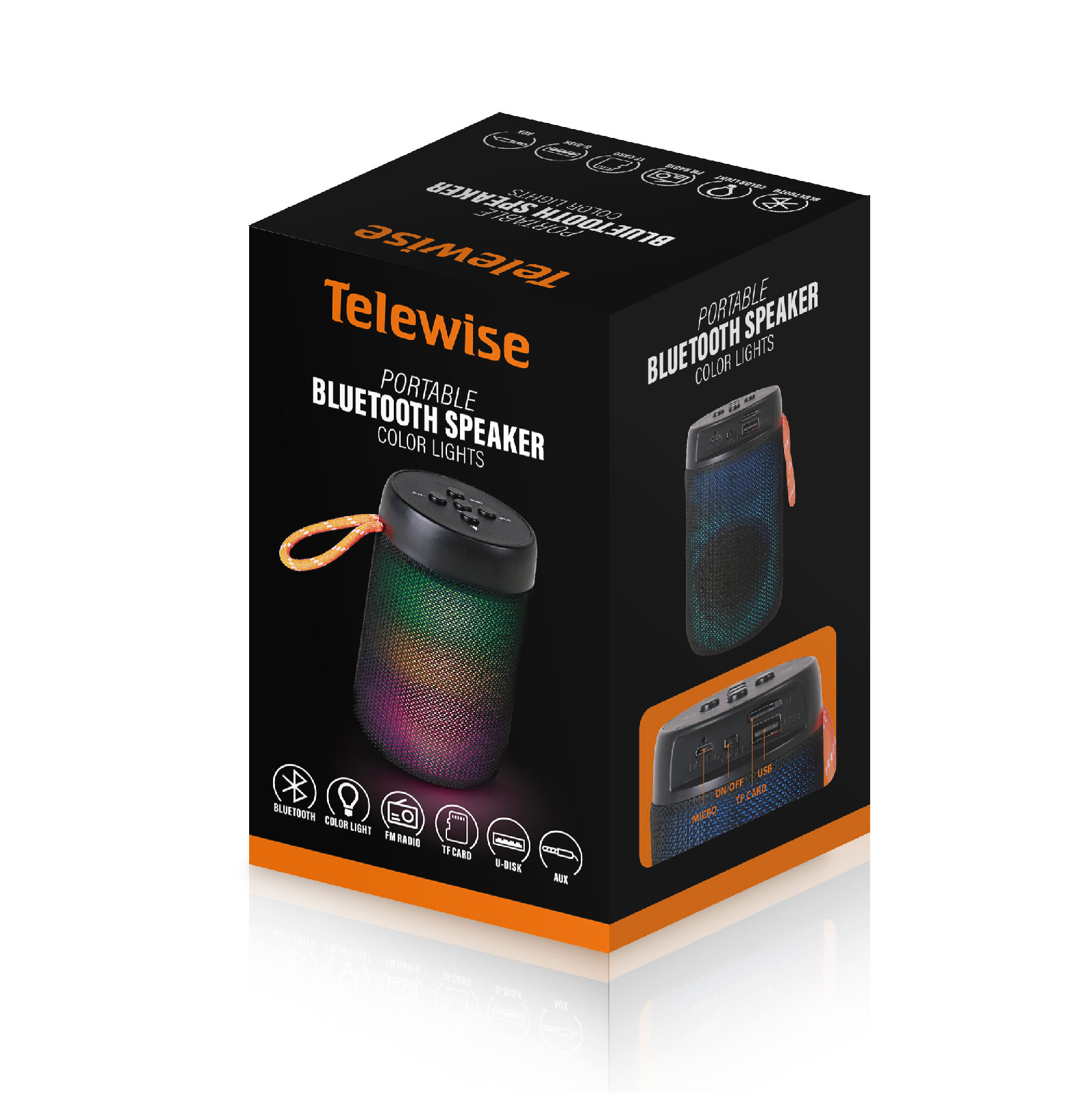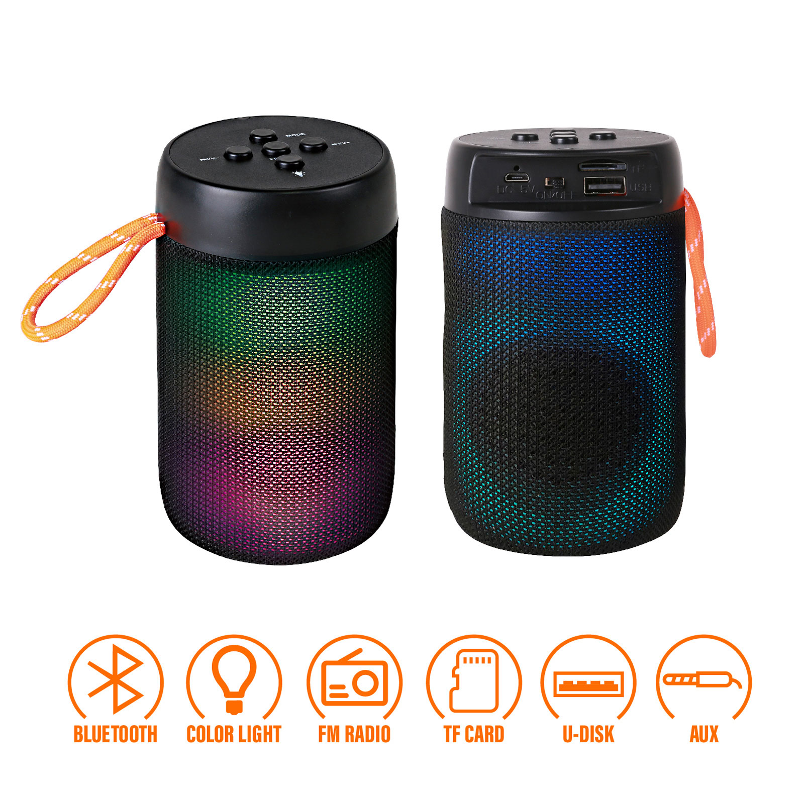 - Function : Bluetooth, FM Radio, TF Card, U-disk, AUX, Color Light