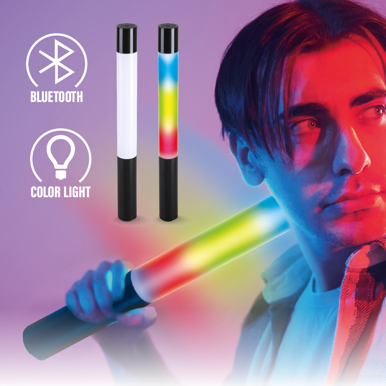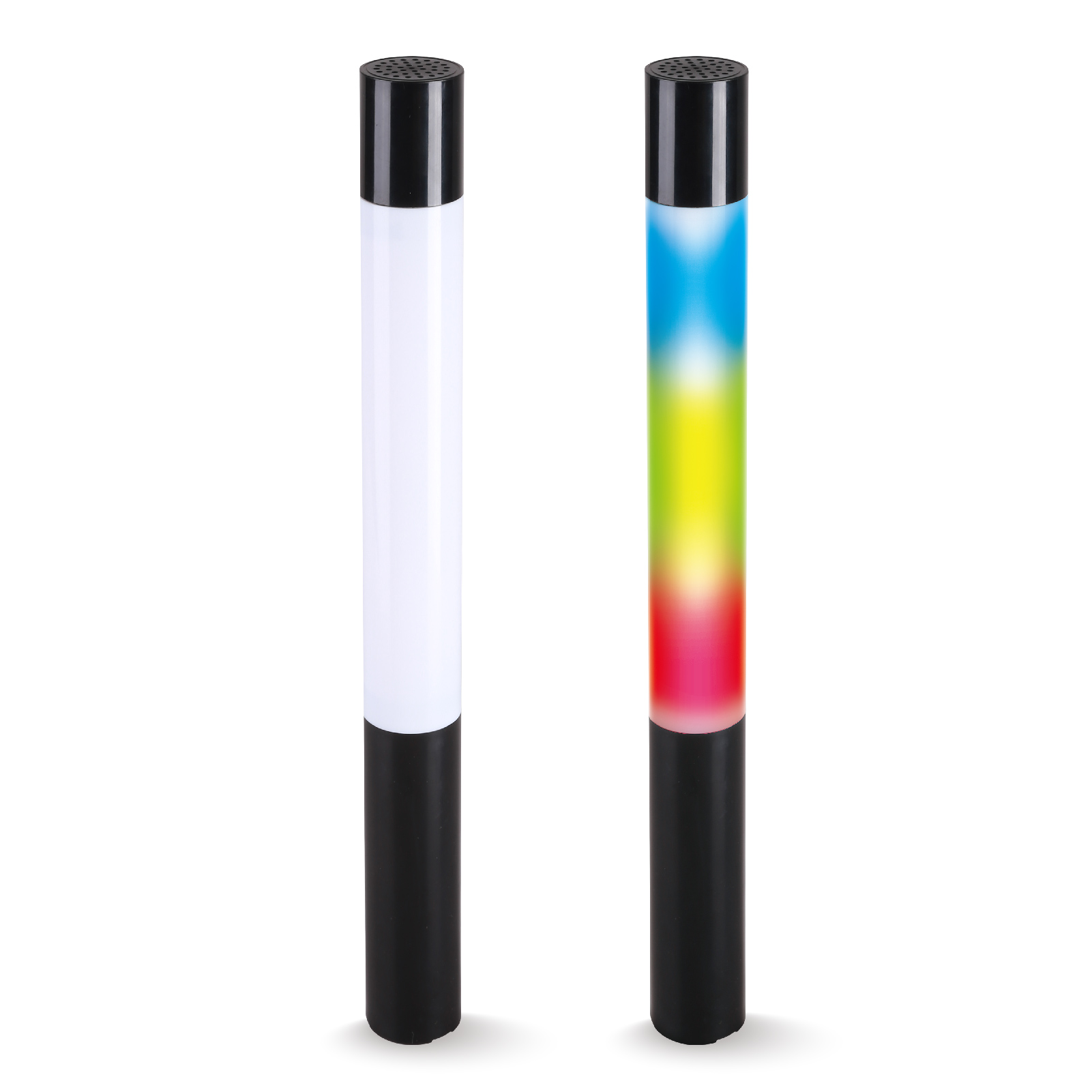 BT03-123Portable Handheld Light Wand & Bluetooth Speaker. The perfect sound quality makes the Bluetooth speaker ideal for outdoors and indoors to enjoy your music. The portable and compact design also makes the speaker used as a unique led night light, which creates a romantic atmosphere to light up your space.