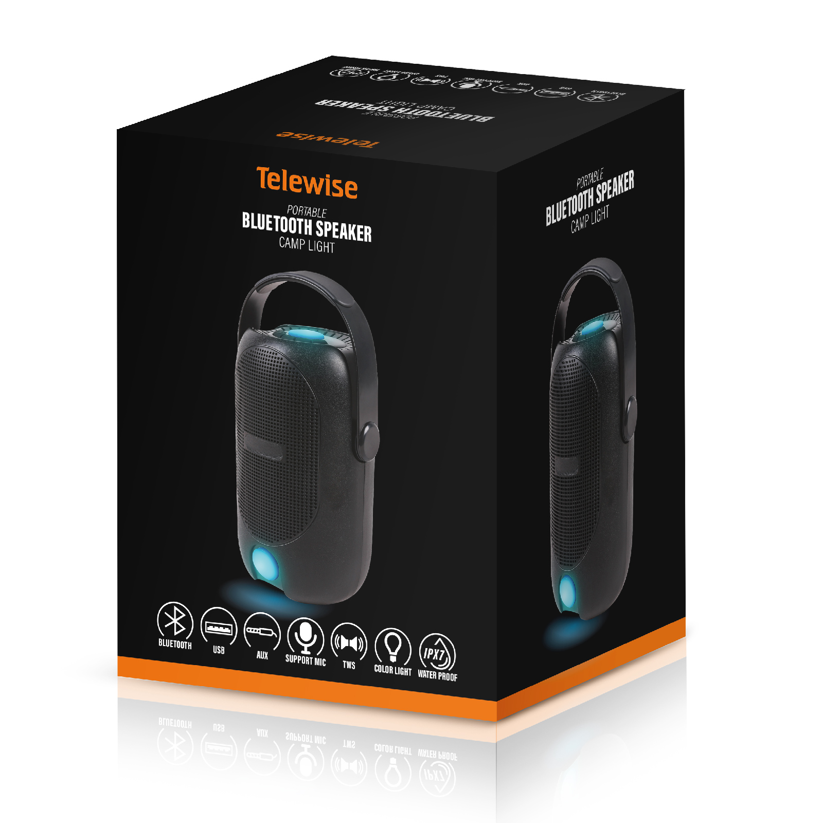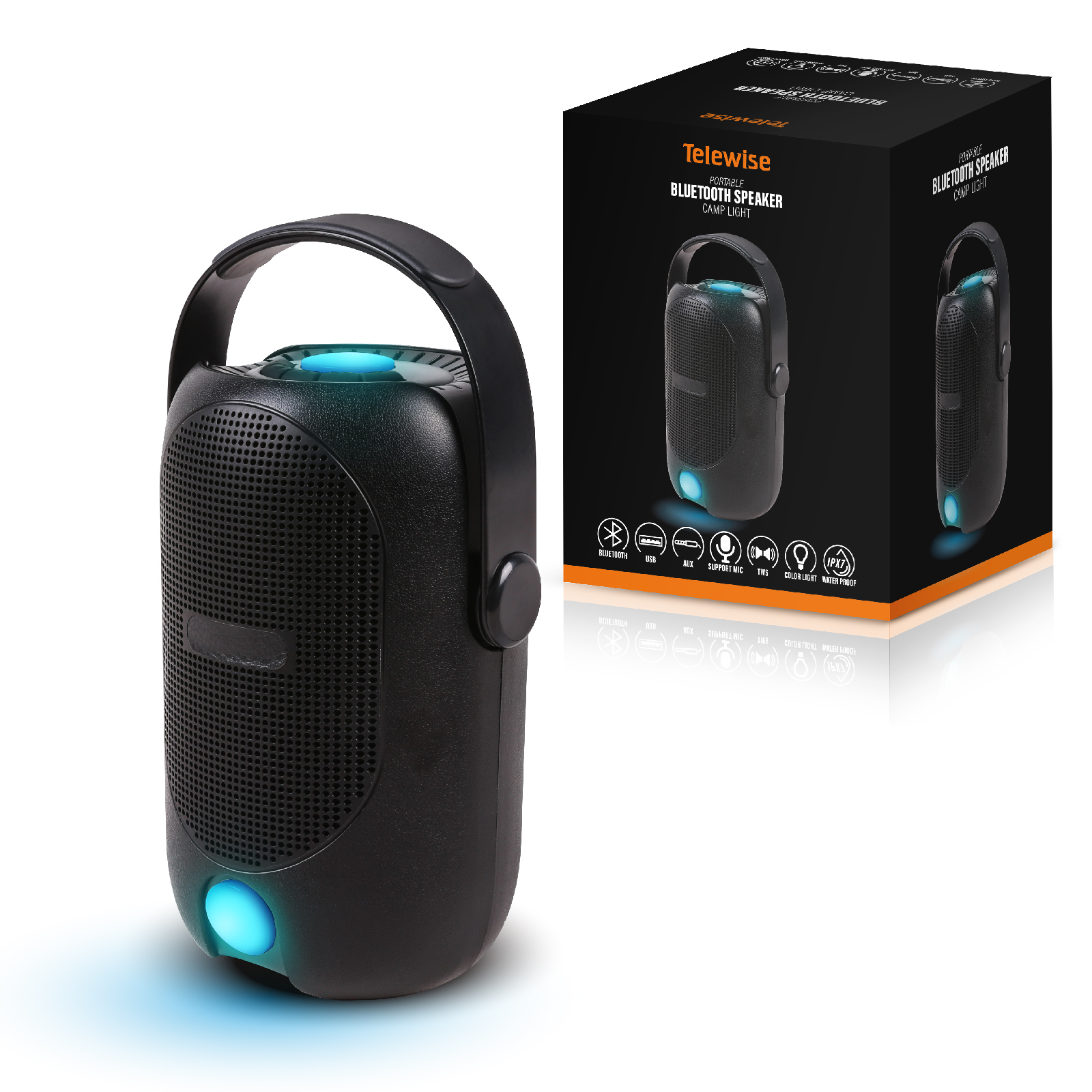 - Function : Bluetooth, AUX, USB, Led Light, Mic support, IPX7 Waterproof