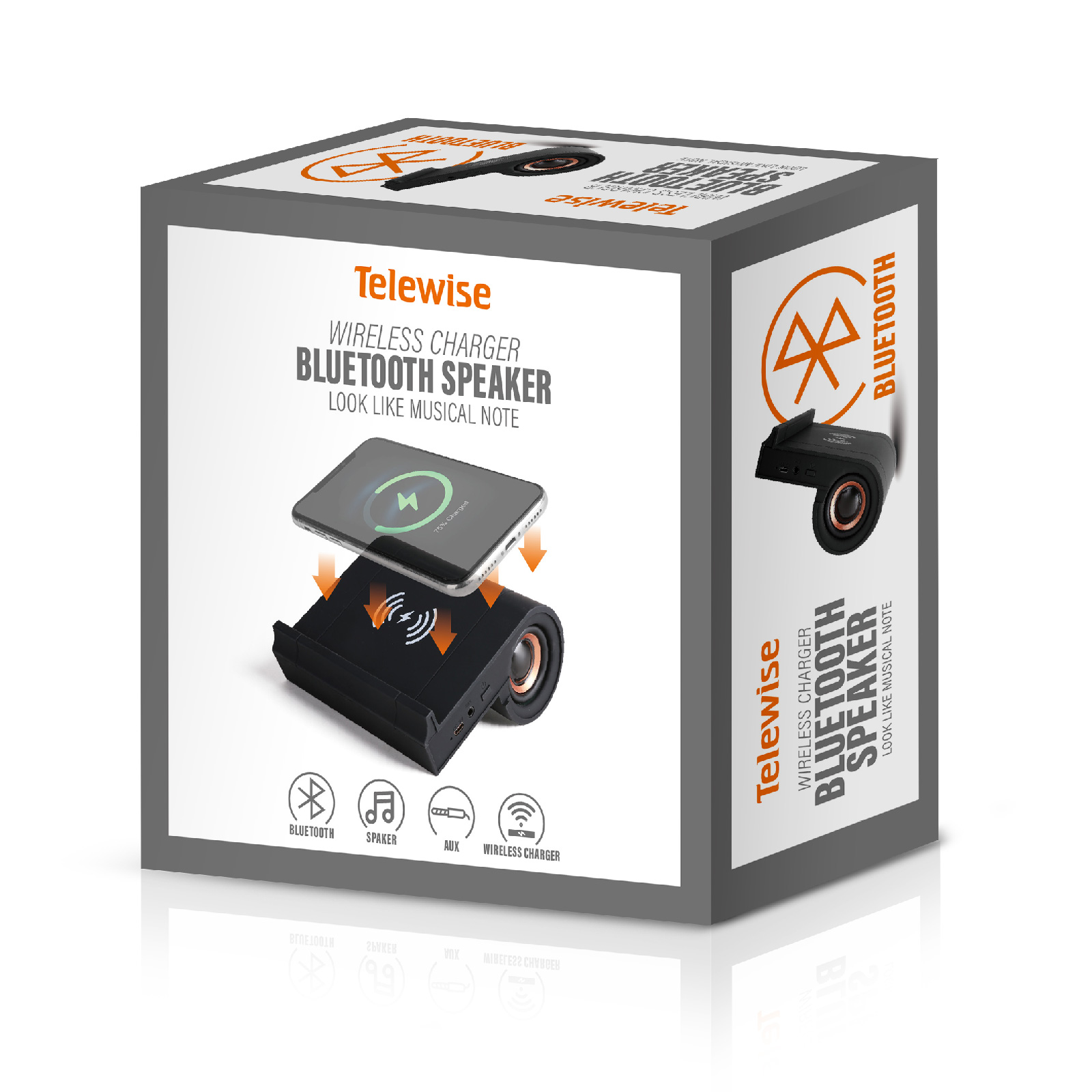 - Function : Bluetooth Speaker, AUX, Wireless Charger