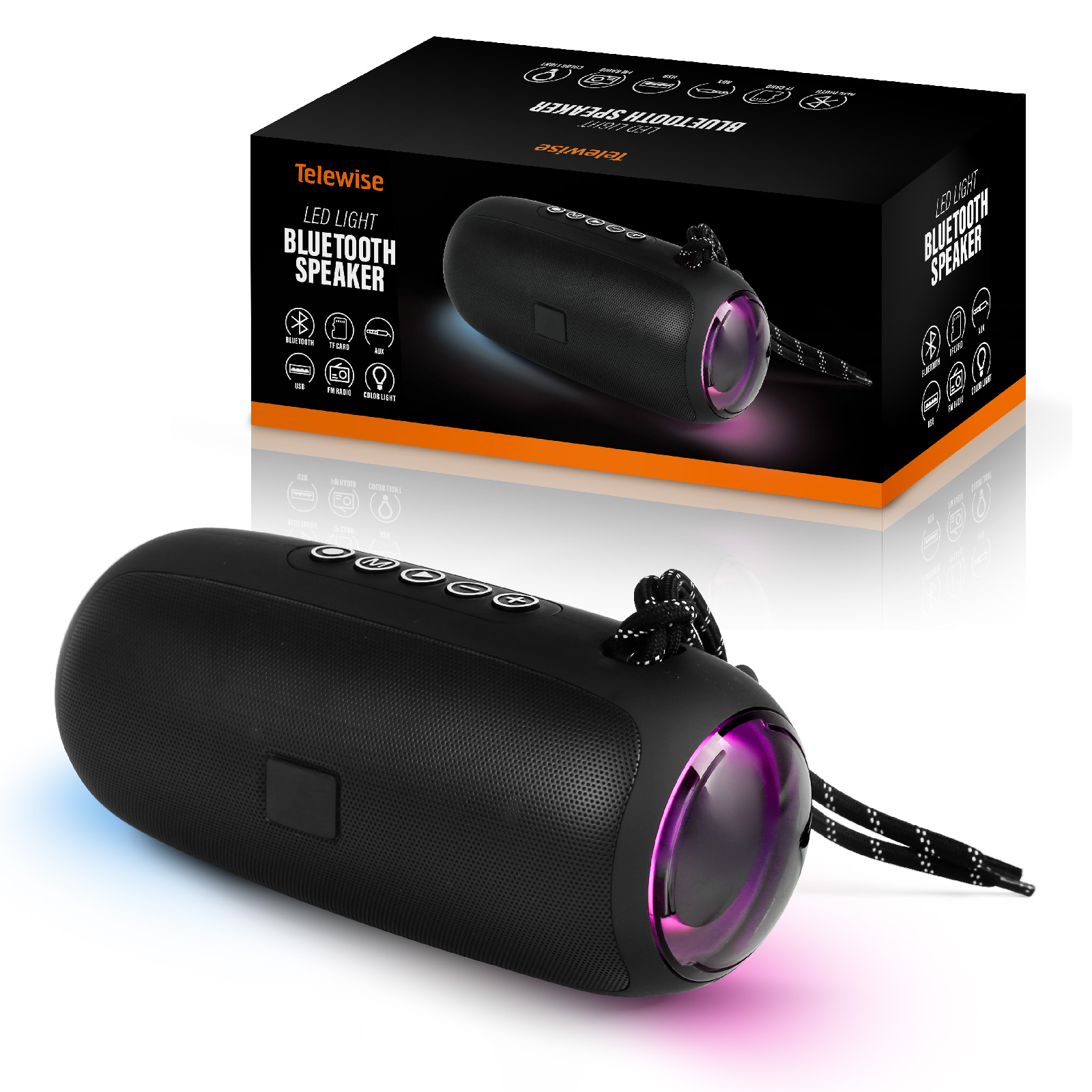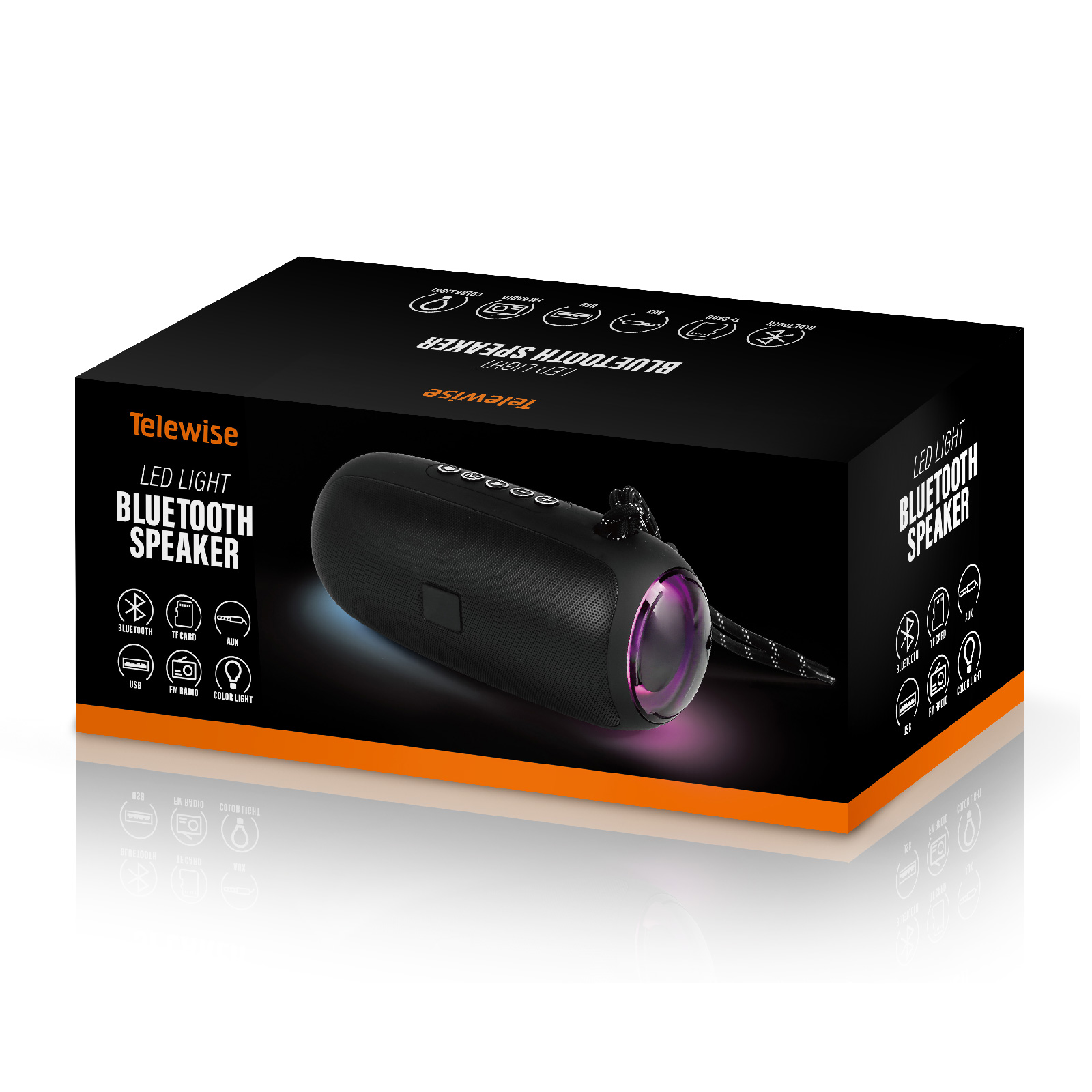 - Function : Bluetooth, TF Card, AUX, USB, FM Radio, Led Color Light