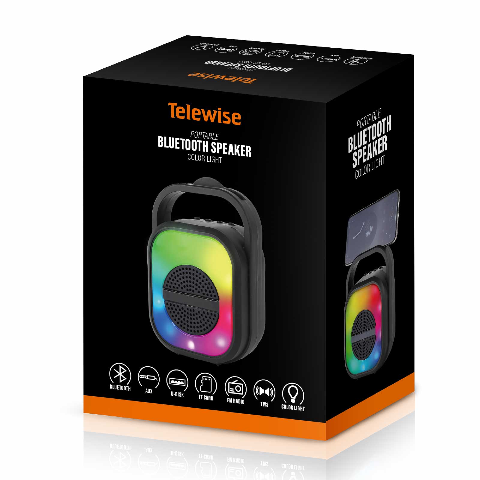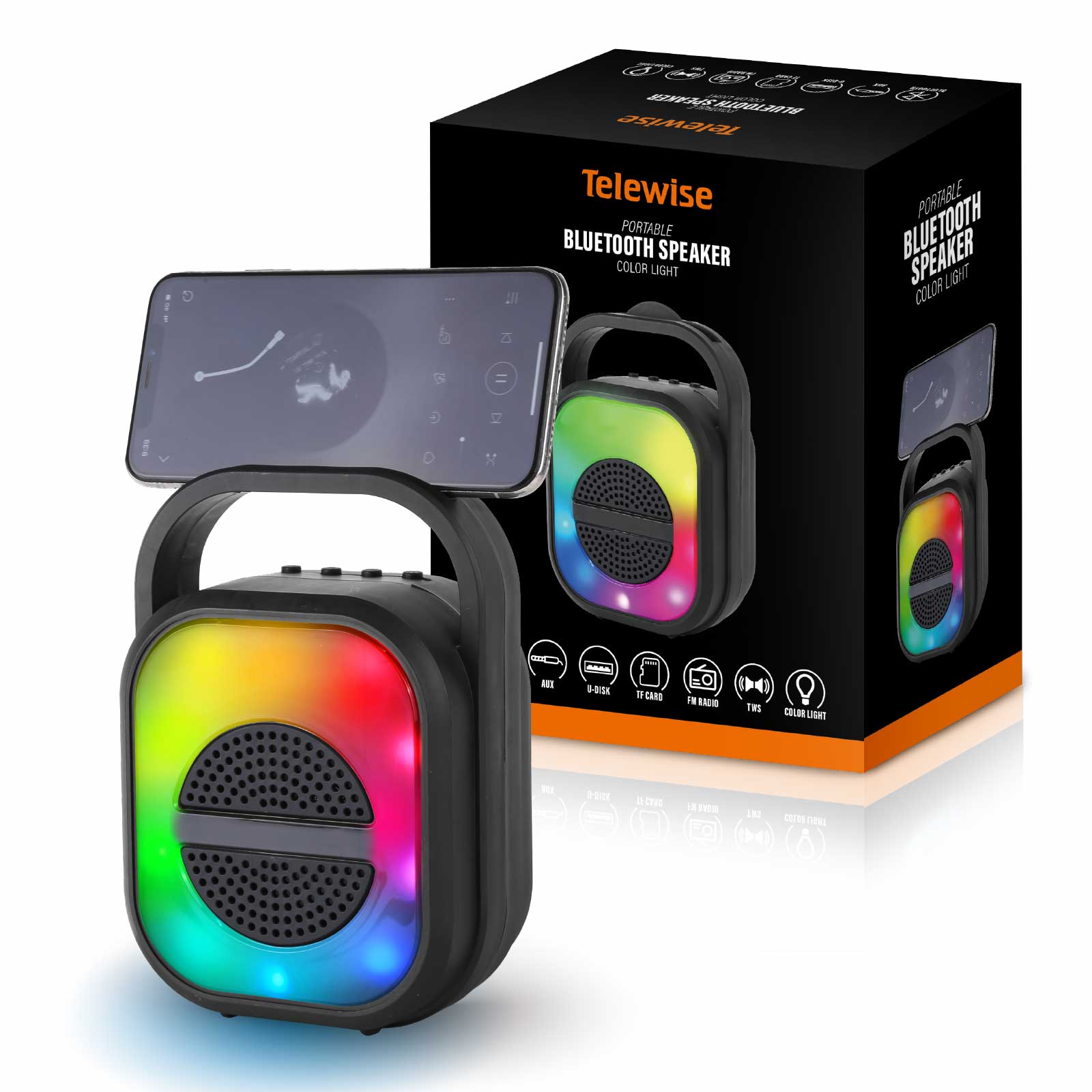 - Function : Bluetooth, TWS, AUX, TF-Card, USB, FM Radio, Led Color Light, Phone Holder.