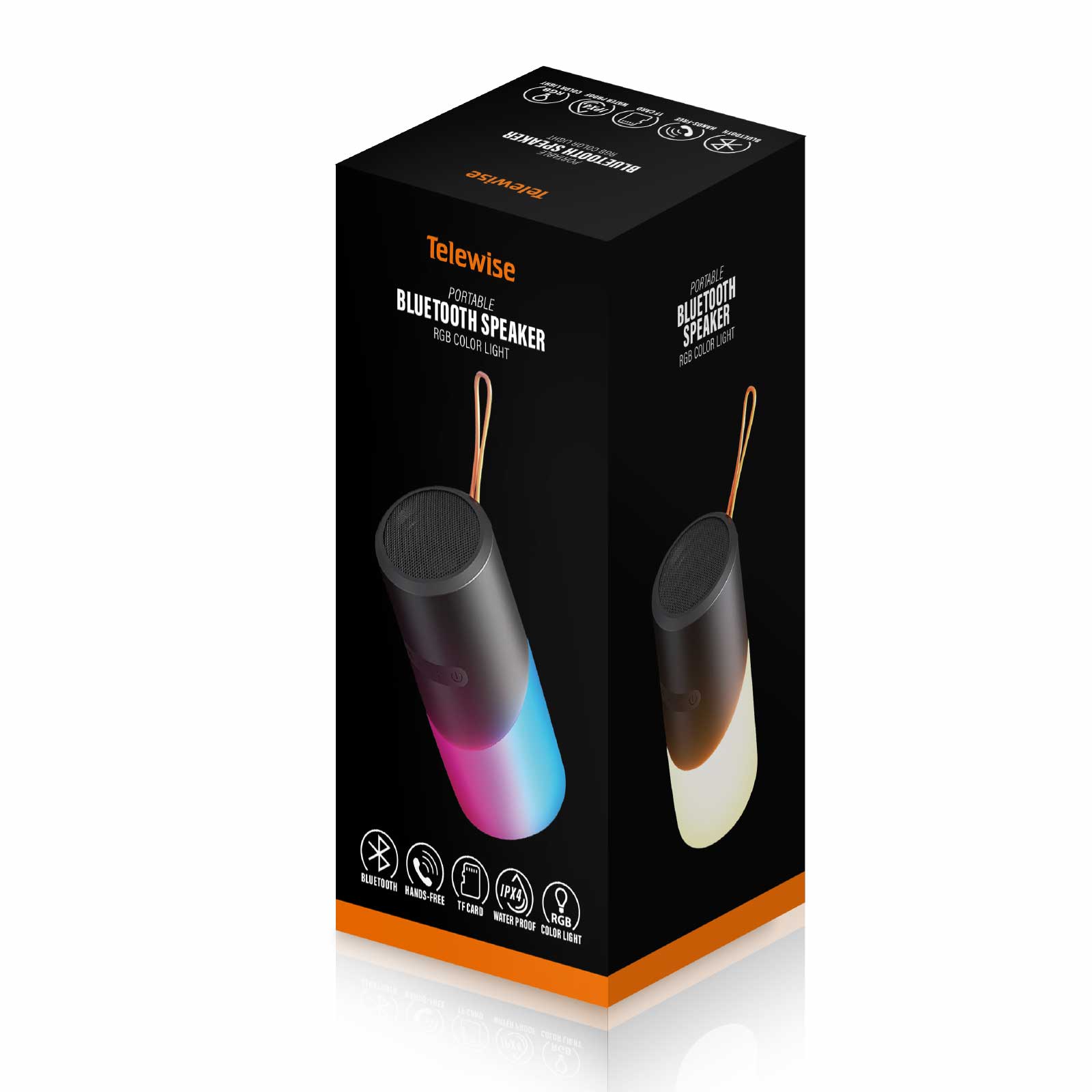 BT03-147The perfect sound quality makes the Bluetooth speaker ideal for outdoors and indoors to enjoy your music. The portable and compact design also makes the speaker used as a unique led night light, which creates a romantic atmosphere to light up your space. Engineered to handle rough use and adverse weather conditions, this speaker features a durable design and an IPX5 rating for protection against water splashes and spills.