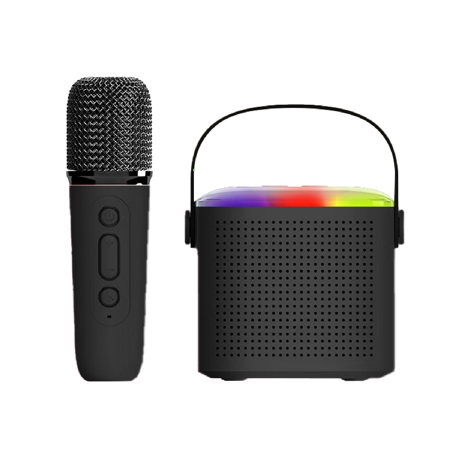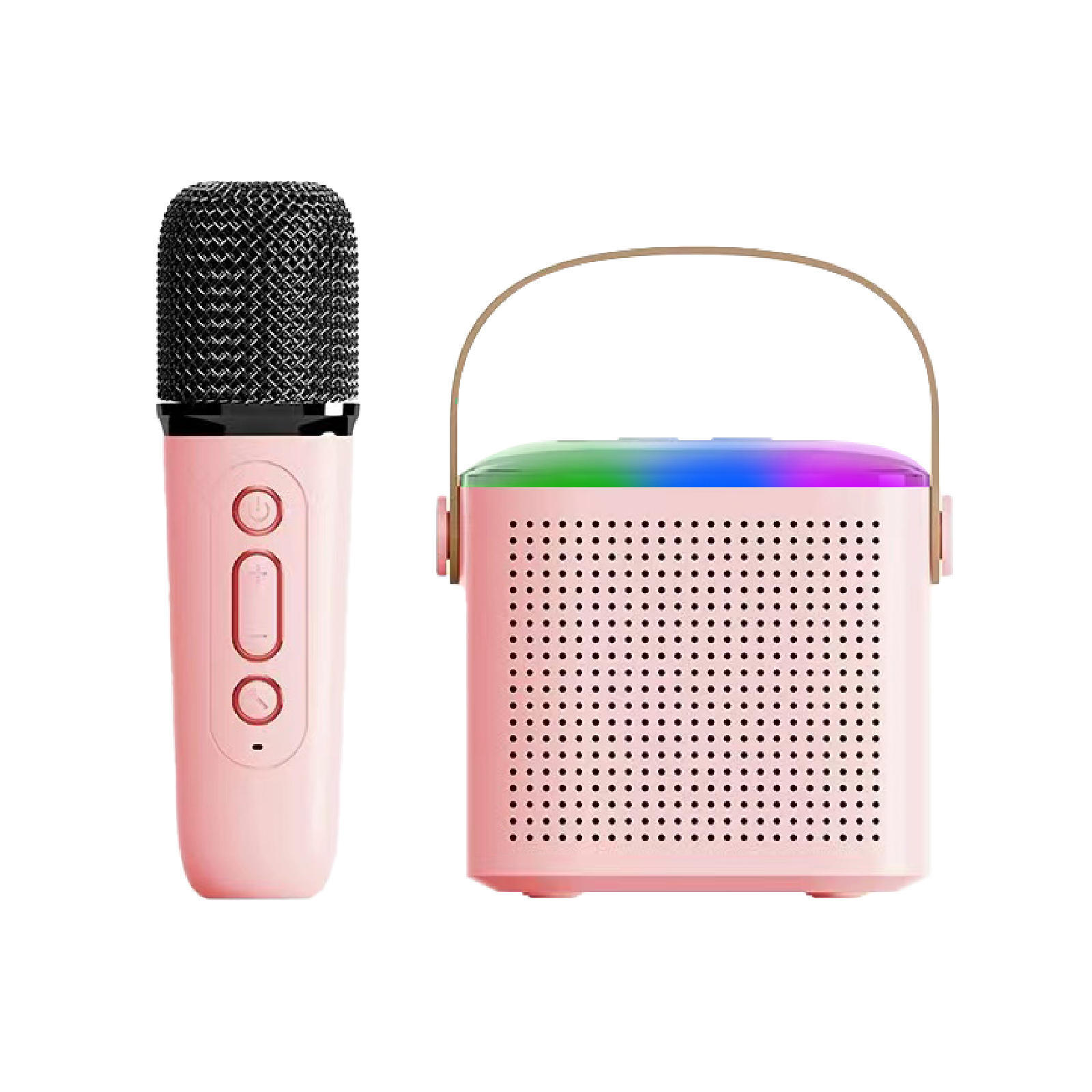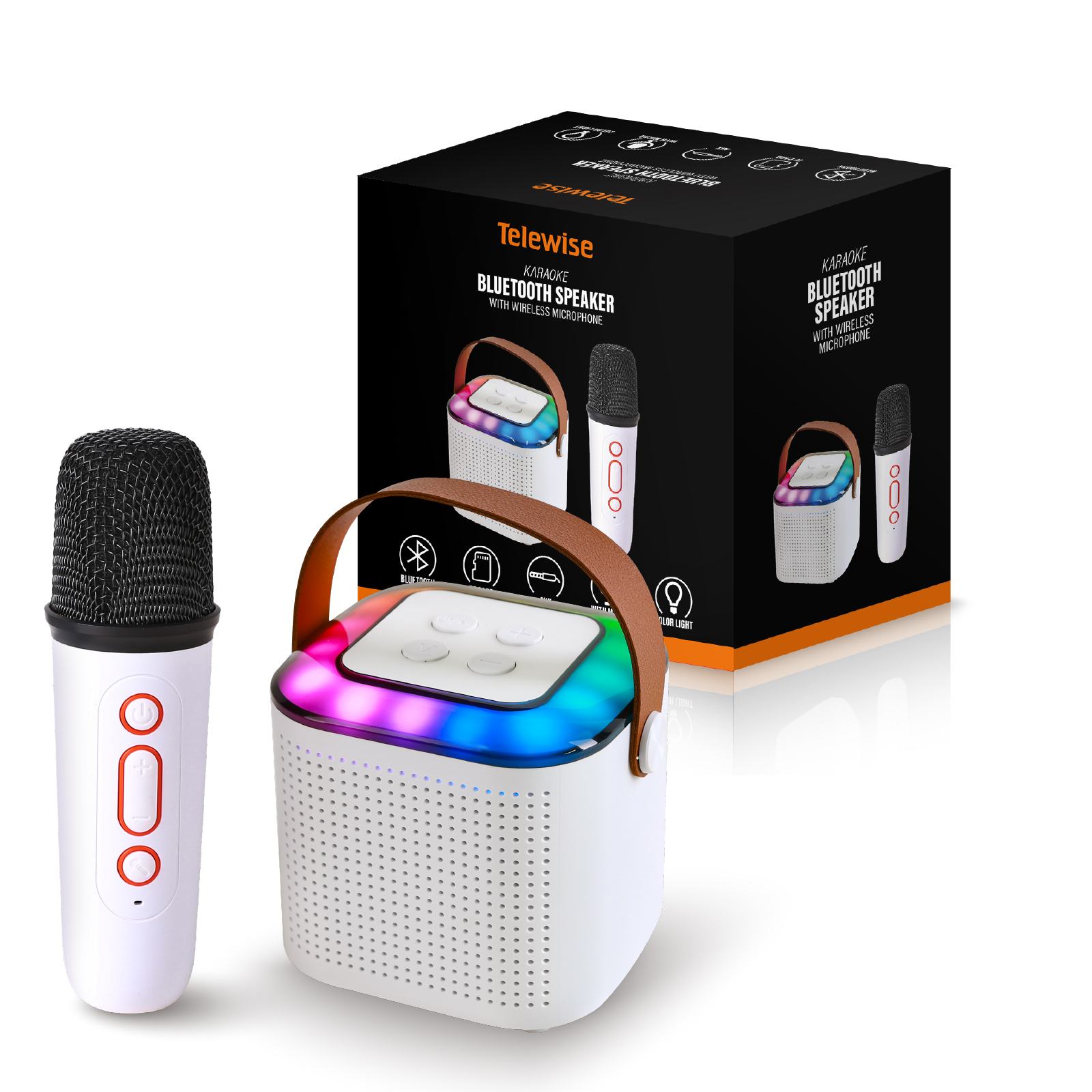 BT03-158Mini karaoke bluetooth speaker set includes portable speaker & small and exquisite microphones ( with different sound effects). Lightweight karaoke machine with internal rechargeable battery,With a leather wristband, this retro speaker is sturdy and portable to take anywhere,Perfect for family outing, karaoke party, house party, church, hotel conference room, classroom, lecture room, gymnasium, fitness center, workspace, playroom and any party venue.