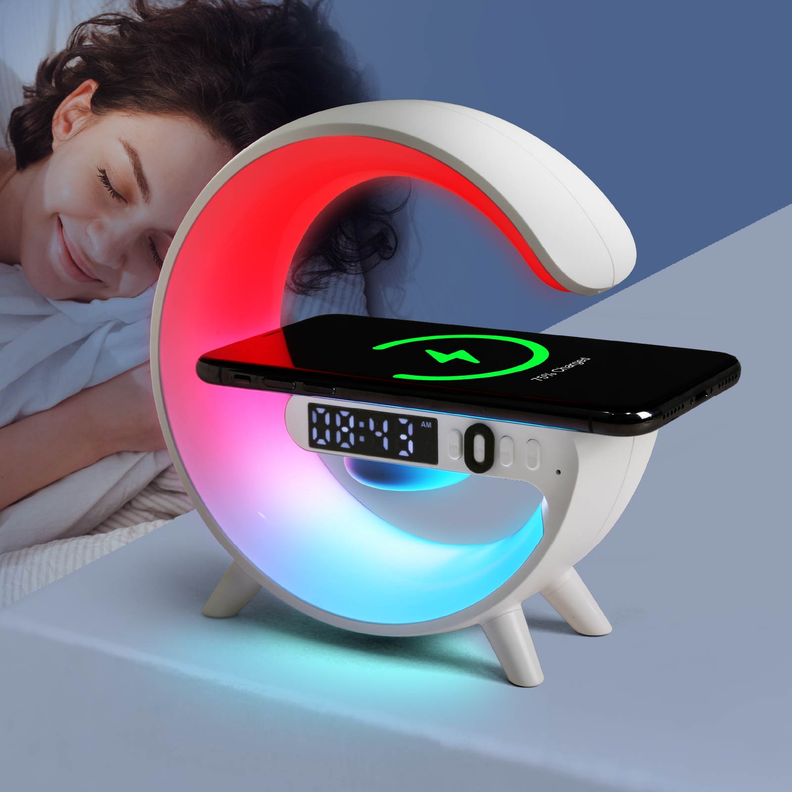 Led Light Wireless Charger Bluetooth Speaker & Alarm Clock