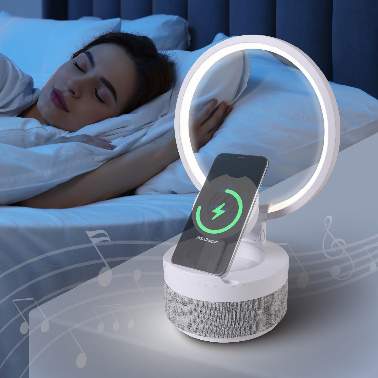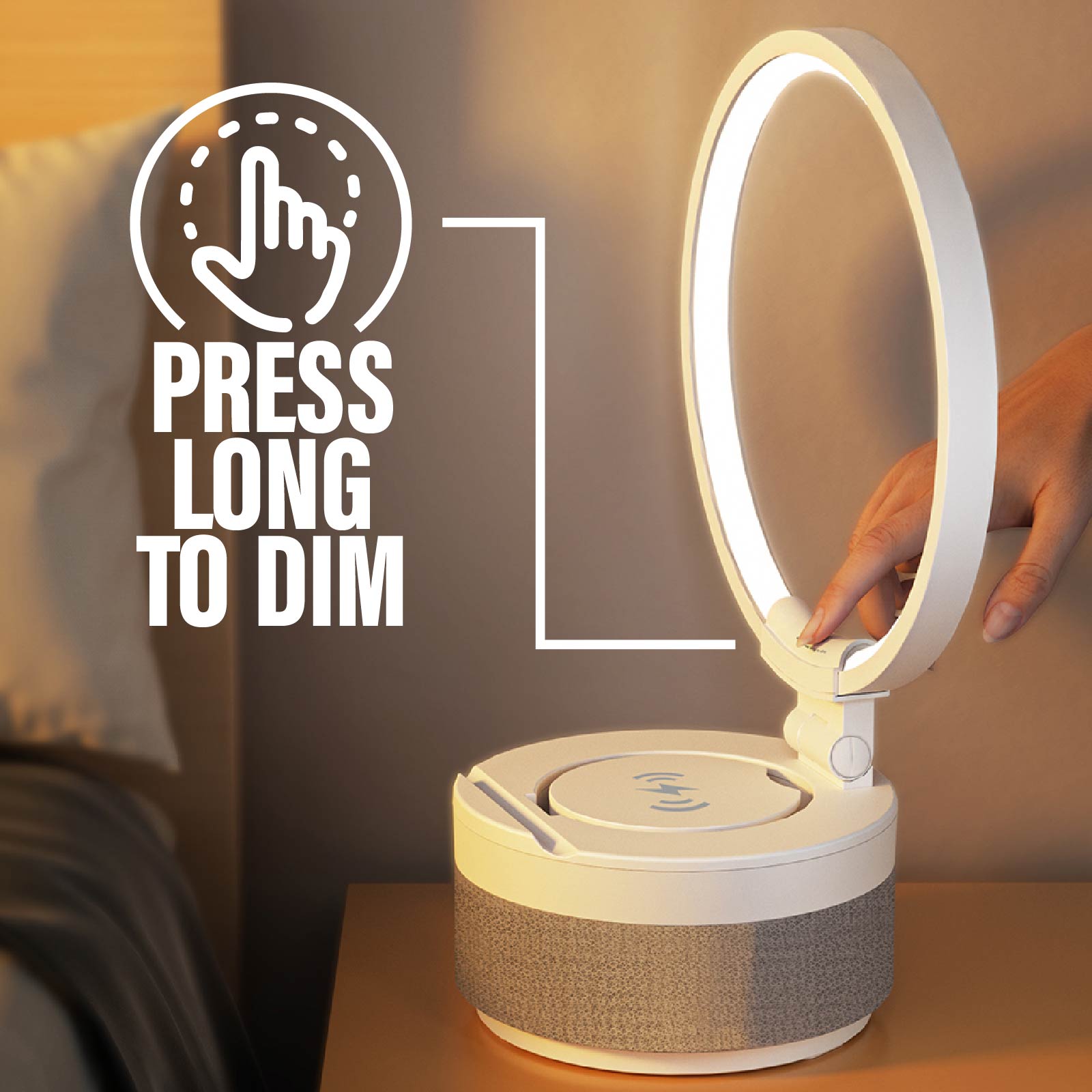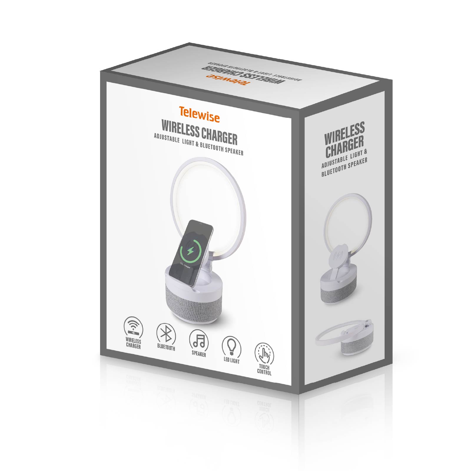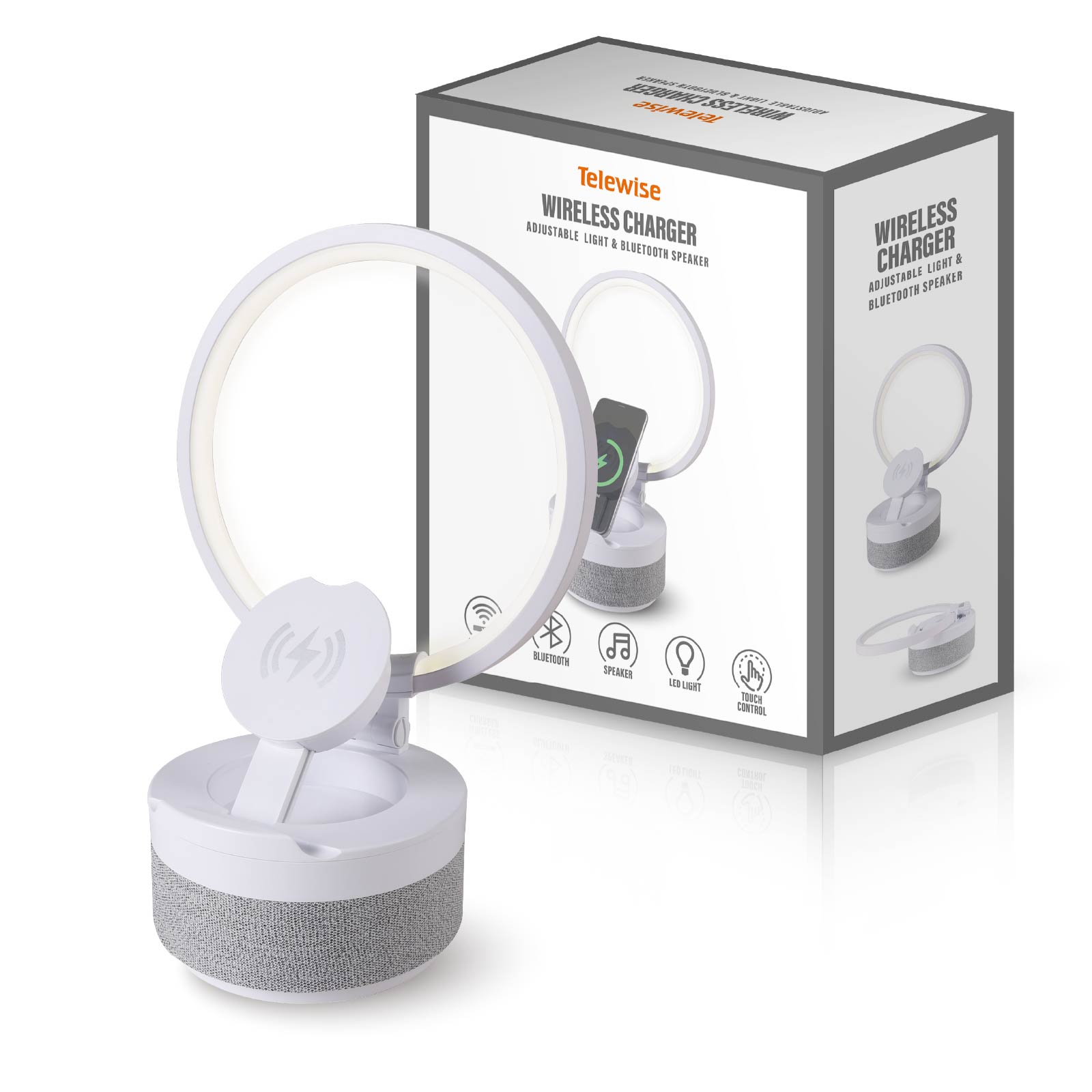 - Function : Bluetooth Speaker, Wireless Charging, Led Light, Touch Control