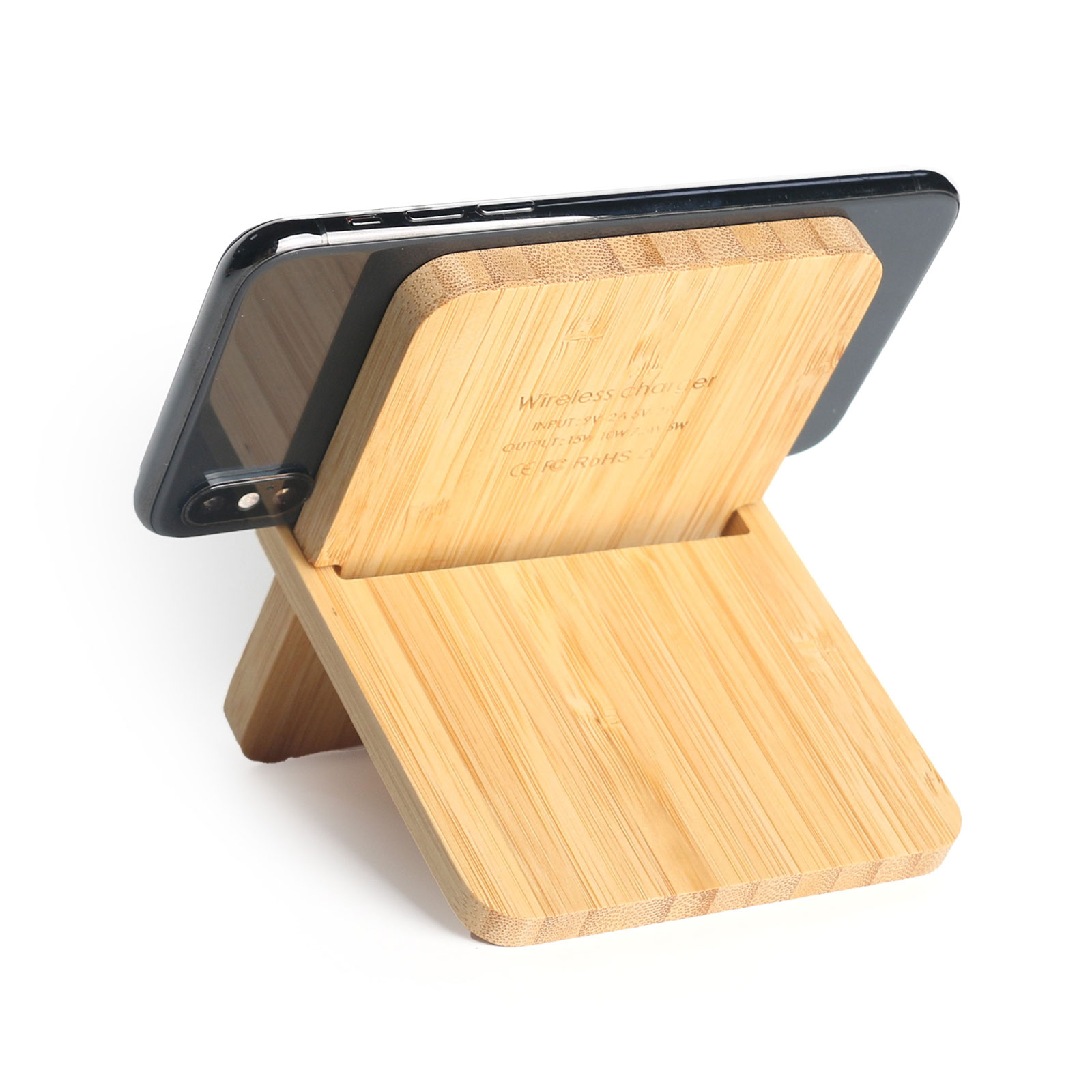Bamboo 3 in 1 Wireless Charging Phone Stand with Mirror