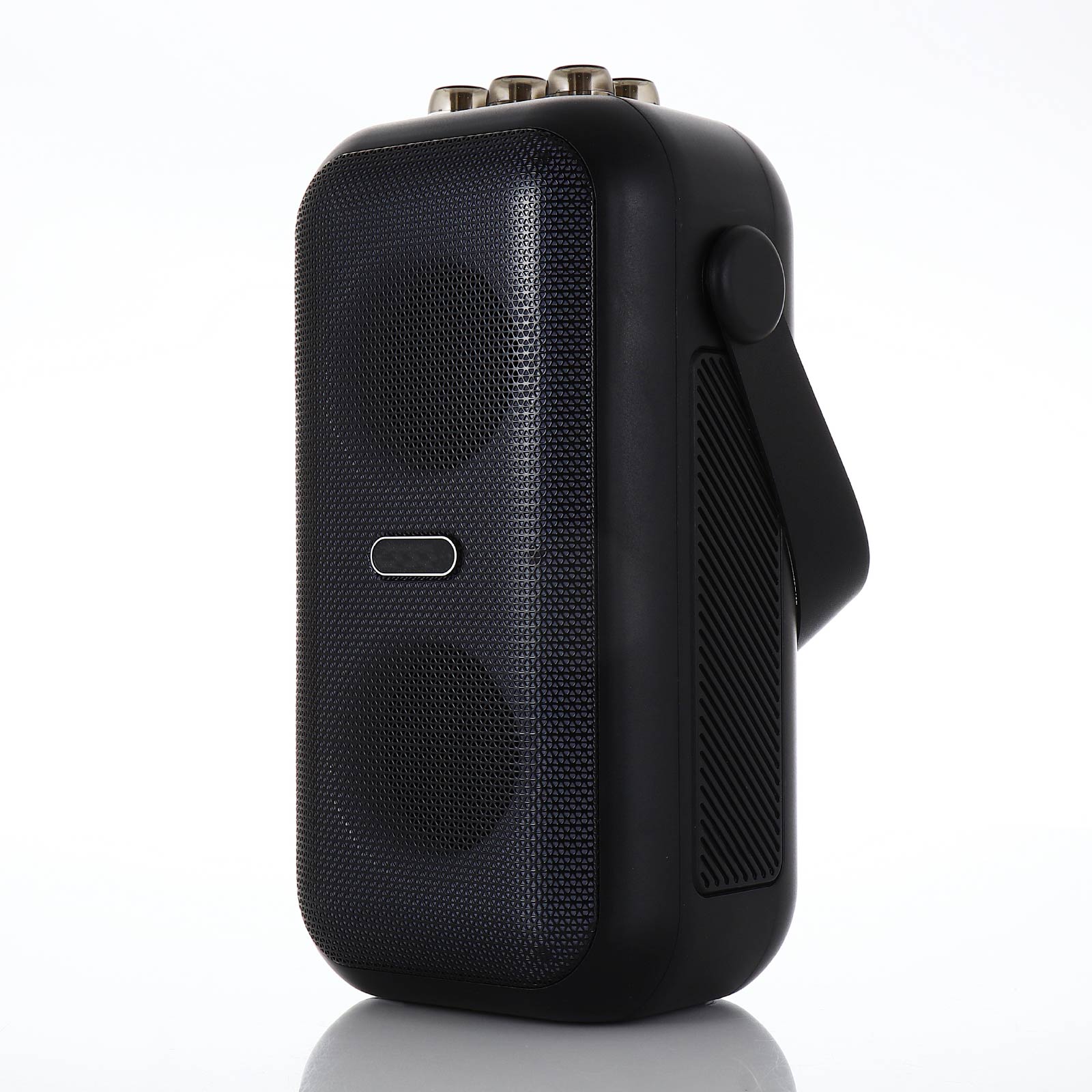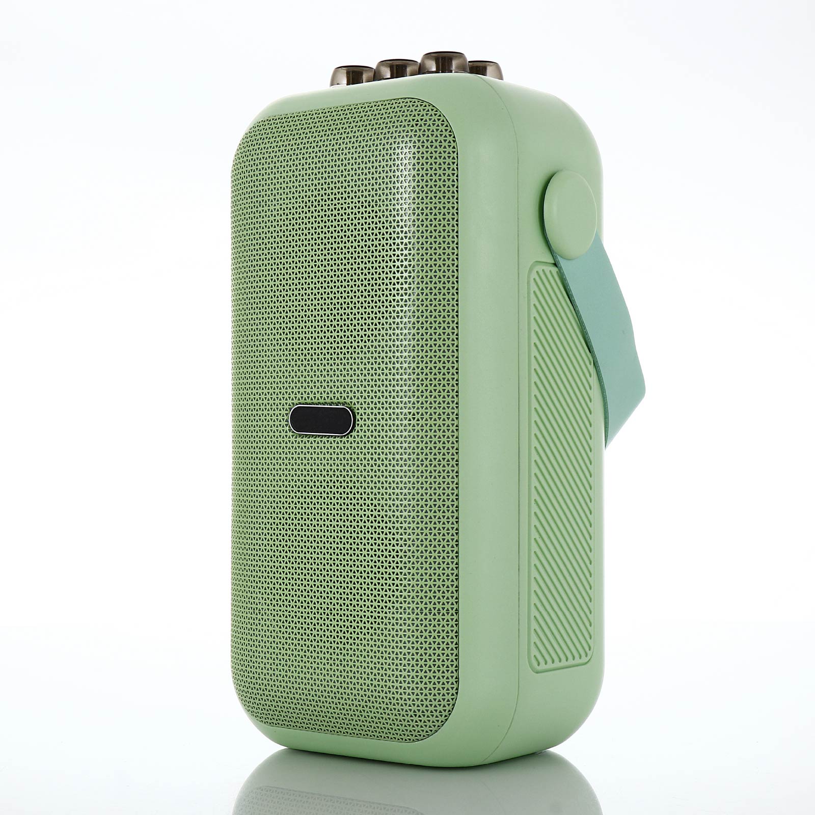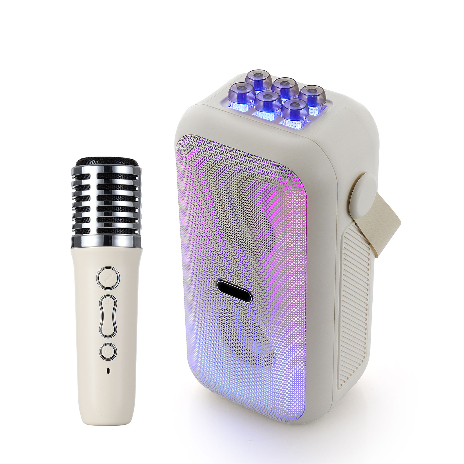 BT03-216karaoke bluetooth speaker set includes portable speaker & small and exquisite microphones ( with different sound effects). Lightweight karaoke machine with internal rechargeable battery, With a leather wristband, this retro speaker is sturdy and portable to take anywhere,Perfect for family outing, karaoke party, house party, church, hotel conference room, classroom, lecture room, gymnasium, fitness center, workspace, playroom and any party venue.