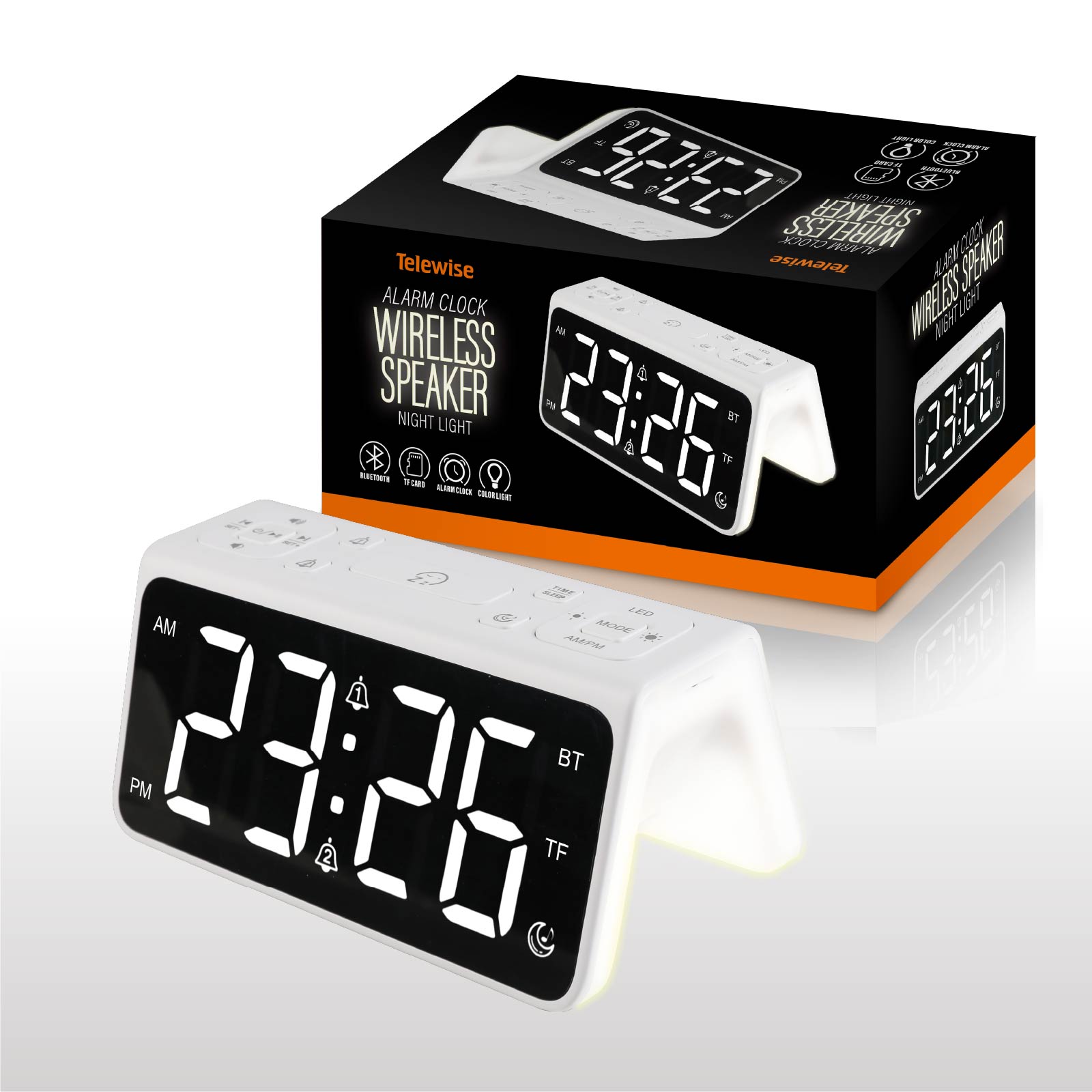 Digital Display Alarm Clock & Wireless Speaker & Night Light