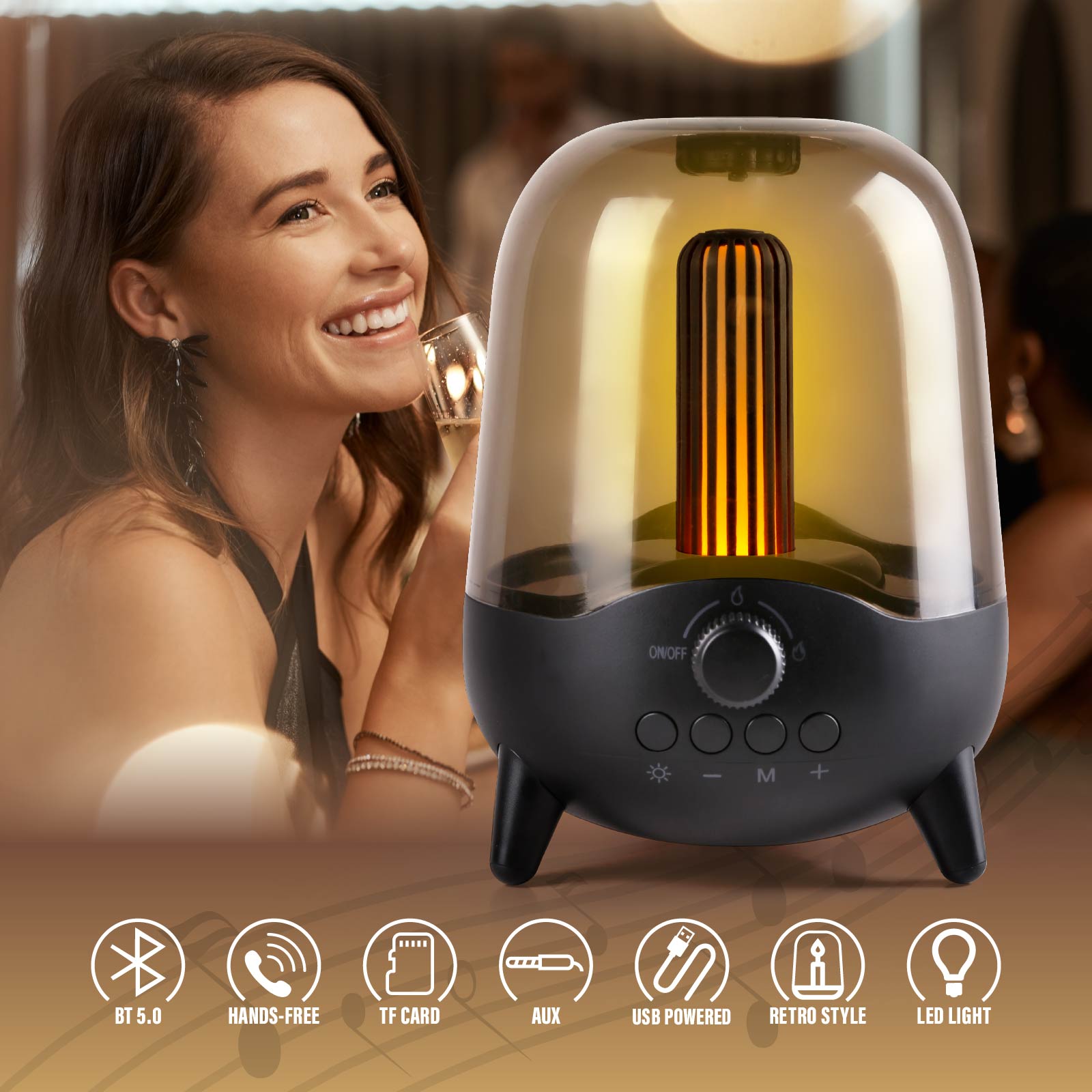 BT03-224The warm yellow light, wrapped in a transparent cover, the candlelight emits a fresh and moist mist, warm and quiet, relieve your stress and soothe your mood. The perfect sound quality makes the Bluetooth speaker ideal for outdoors and indoors to enjoy your music.