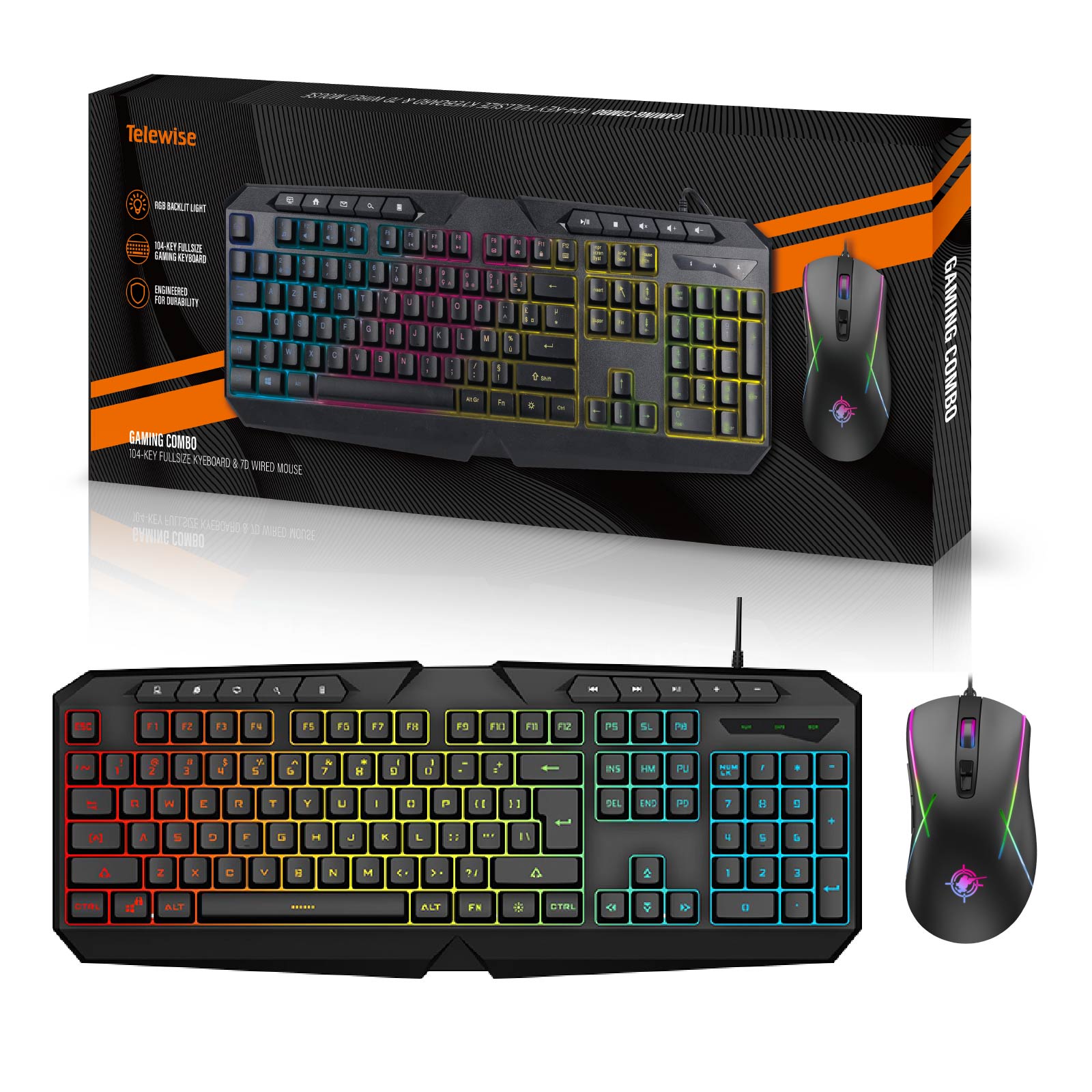 Wired 104-Key RGB Backlit Light Keyborad & 7D Mouse Combo