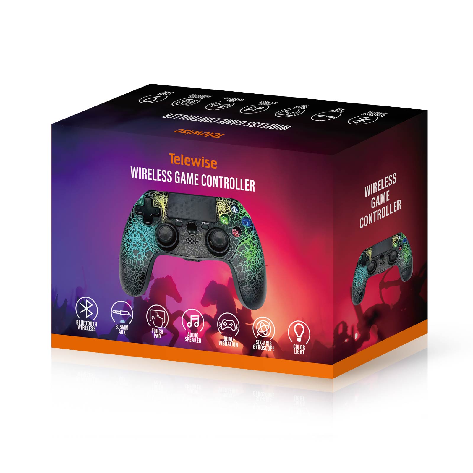 GP01-008Creating the most perfect game experience for gmaers. Support: PS4, Android, PC, Mac; Function: Bluetooth, AUX, EXT Port, Touch Pad, Double Motor Vibration, Six-Axis Gyroscope, Speaker.