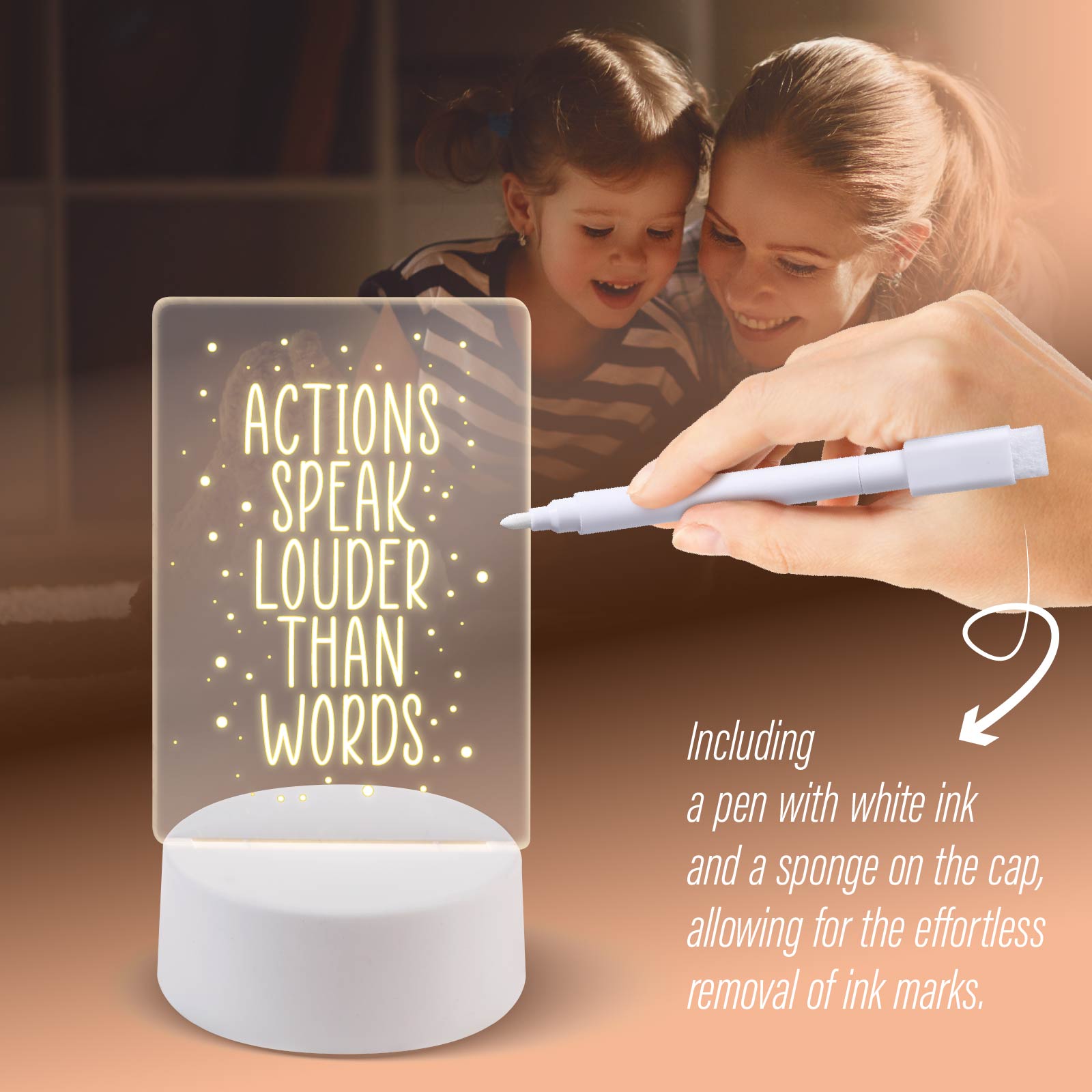 LG03-030Clear acrylic dry erase board with light, classic, fashionable and clear appearance design, perfect for the office, home, or any other environment, glow memo the fashion design adds a unique charm to your desktop. As a note glass led board, write down your message.
