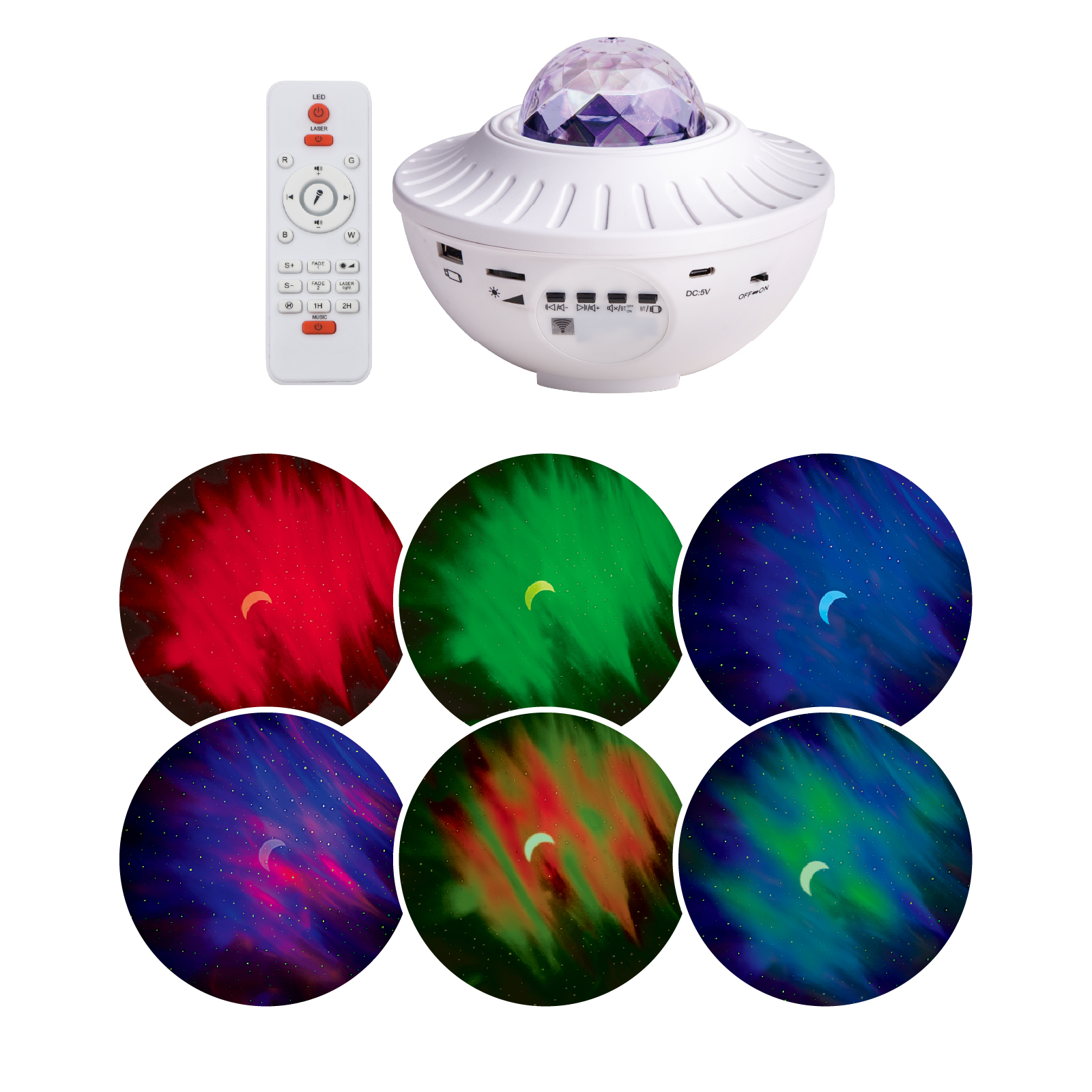 LG02-019Rotating Projector is perfect for the budding astronomerIt throws a room full of colourful Light on to your walls that make up the Universe will beprojected on to your walls for a light show.