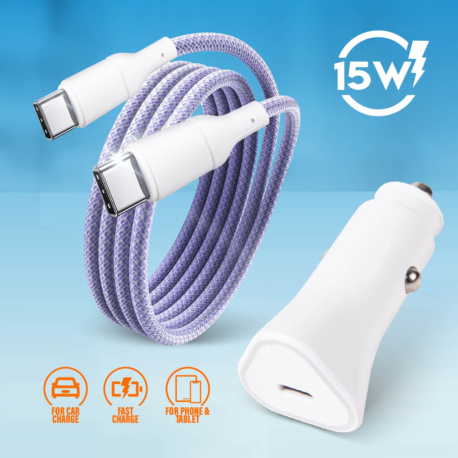15W Car Charger & C to C Cable Charger Combo