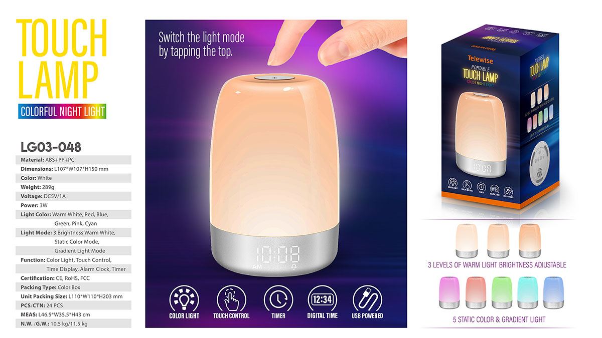 LG03-048Touch activated dimmable bedside lamp with color changing. Very suitable for breastfeeding,sleeping,reading,camping,various occasions requiring lighting.