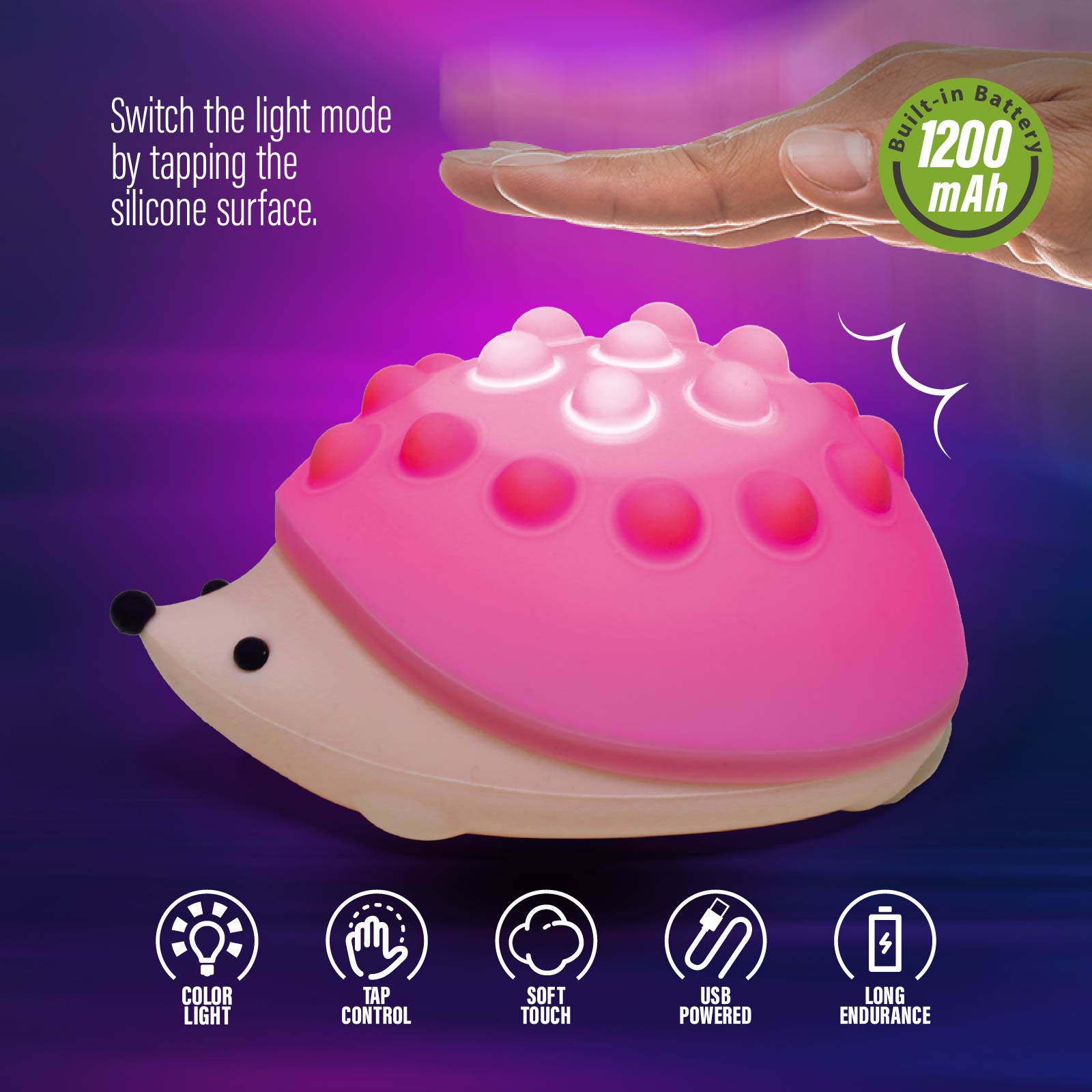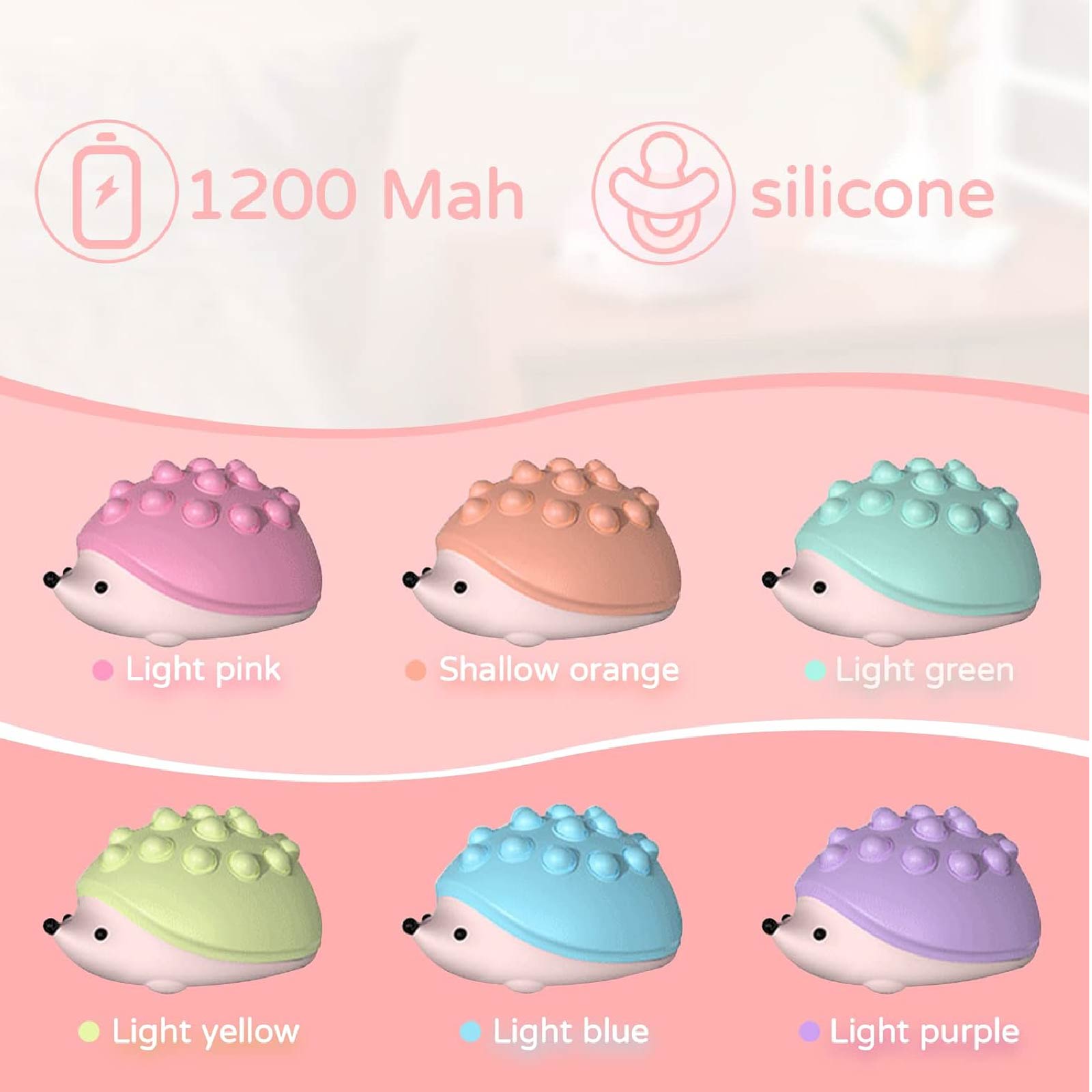 LG03-050Super cute night light, soothing glow creates a relaxing bedtime experience which can protect your kids from darkness and help them fall asleep. 7-color breathing mode and single color mode. You can change its mode by patting the silicone surface.