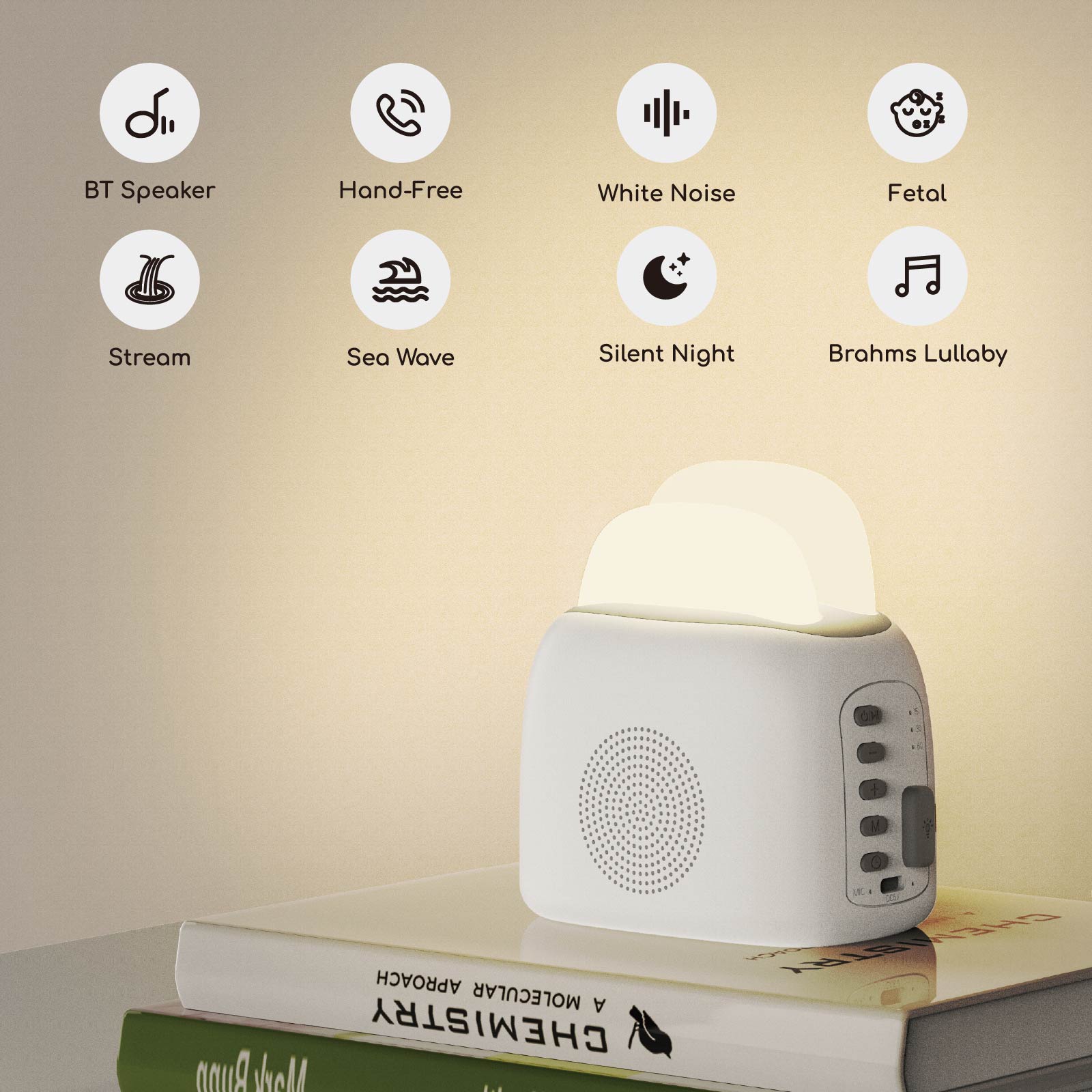 BT03-240Function: Bluetooth Speaker, Handsfree, Night Light, Sleep Aid Noise Mode: White Noise / Stream / Sea Wave / Fetal / Silent Nigh / Brahms Lullaby)