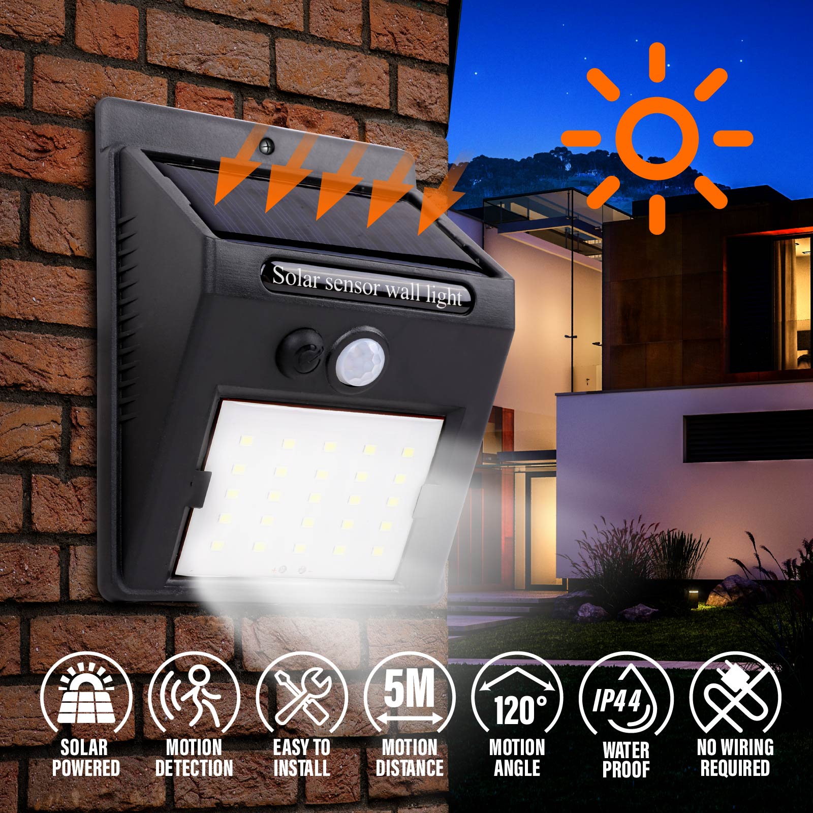 25 LED Solar Sensor Wall Light (IP44 Waterproof)