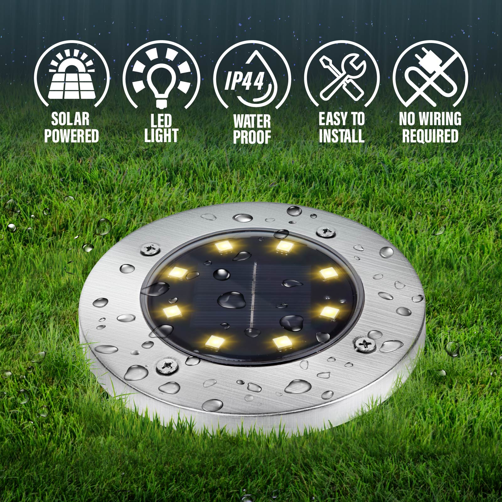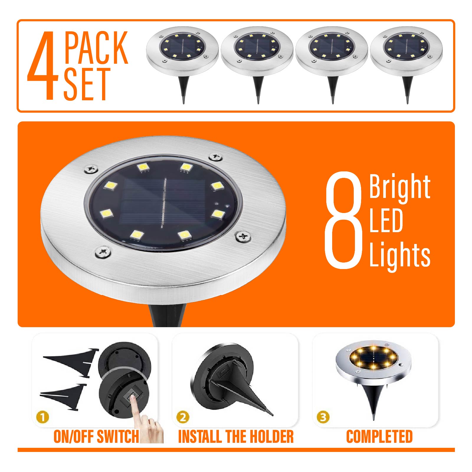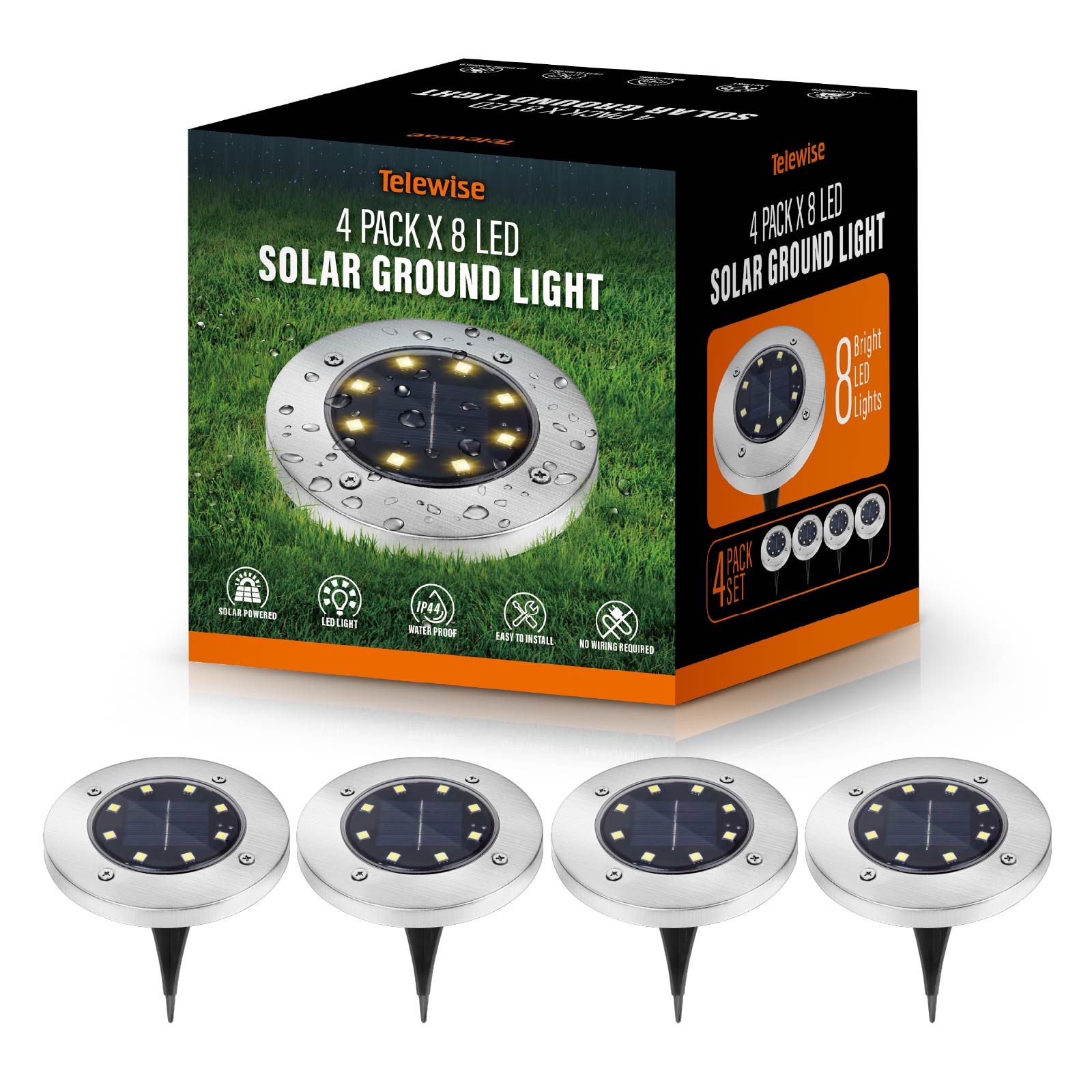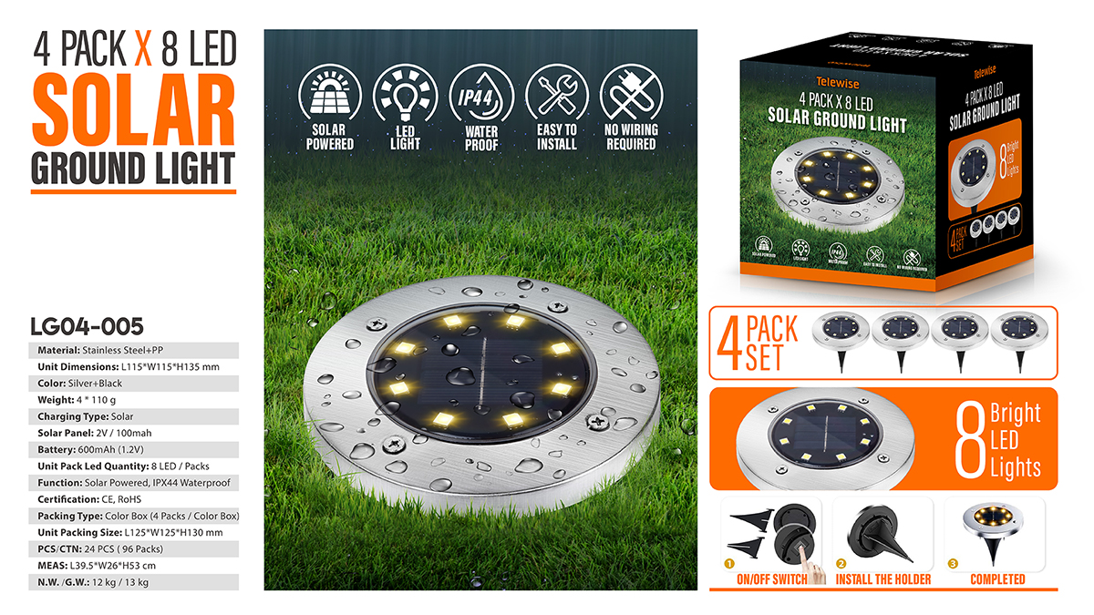 8 LED Solar Ground Light (IPX 44 Waterproof)