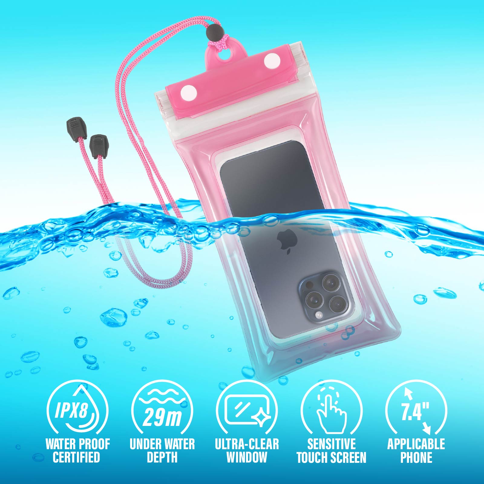 - Function : IPX8 Waterproof Closure, Screen Touch Friendly, Design Transparent, wIth a Strap, Not suitable over 45℃.