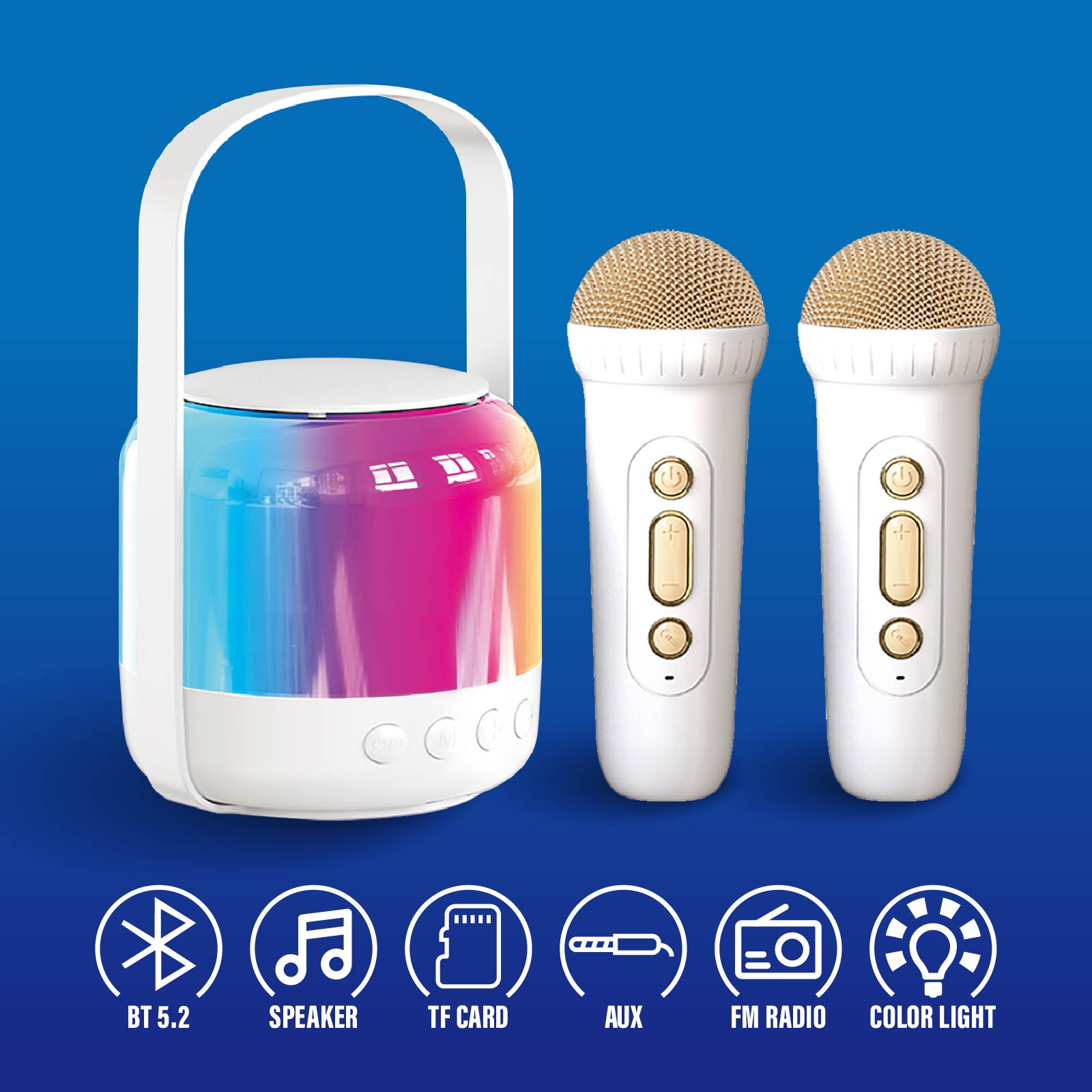 Karaoke Multi-Color Light Wireless Speaker with 2 Microphones