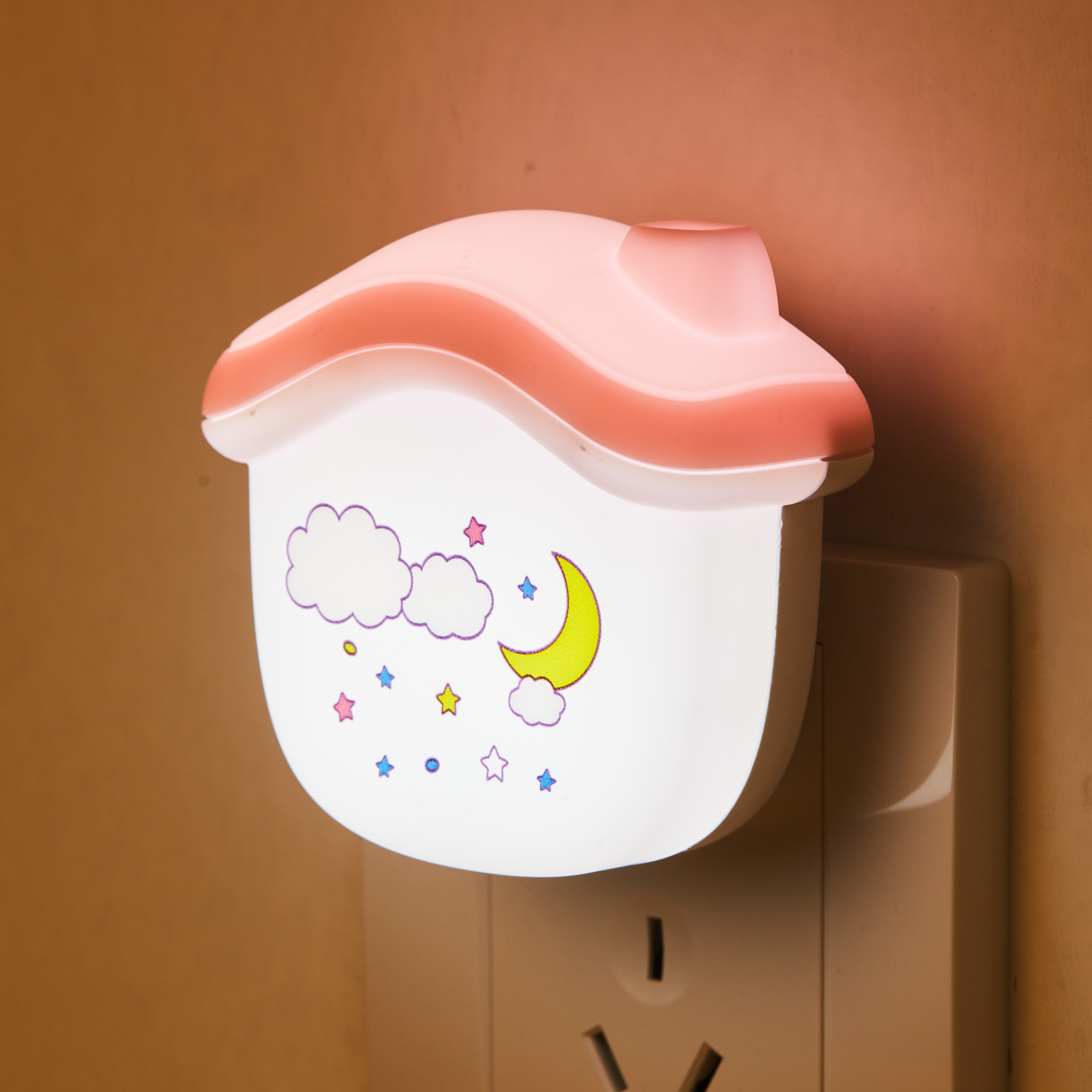 - Function : After plugging in the power,the night light will automatically adjust the LED according to the brightness environment is dim or bright turn the light on or off; unplug the power directly when not in use.