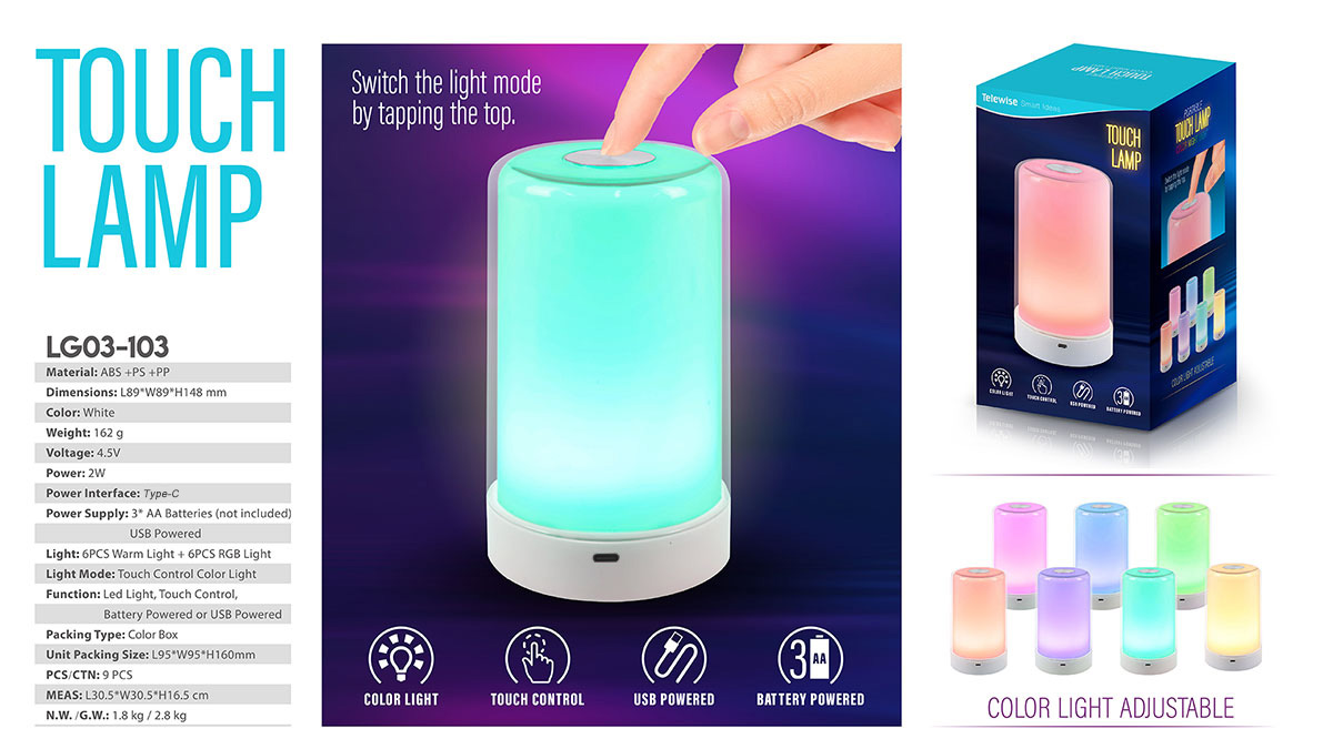 LG03-103Touch activated dimmable bedside lamp with color light changing. Very suitable for breastfeeding,sleeping,reading,camping,various occasions requiring lighting.