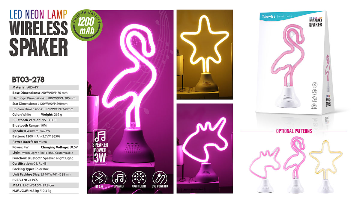 LED Neon Lamp Wireless Speaker (Flamingo, Star, Unicorn)