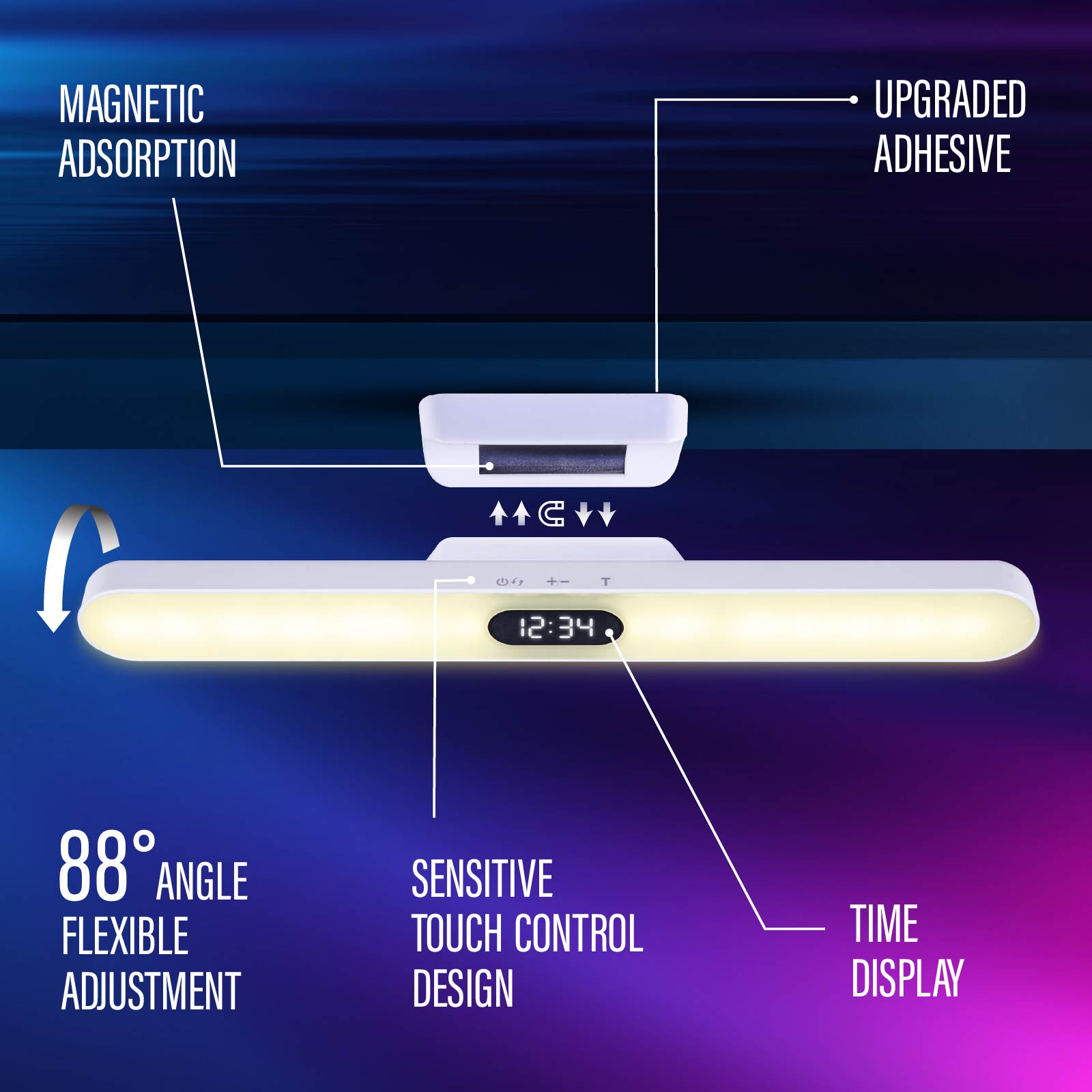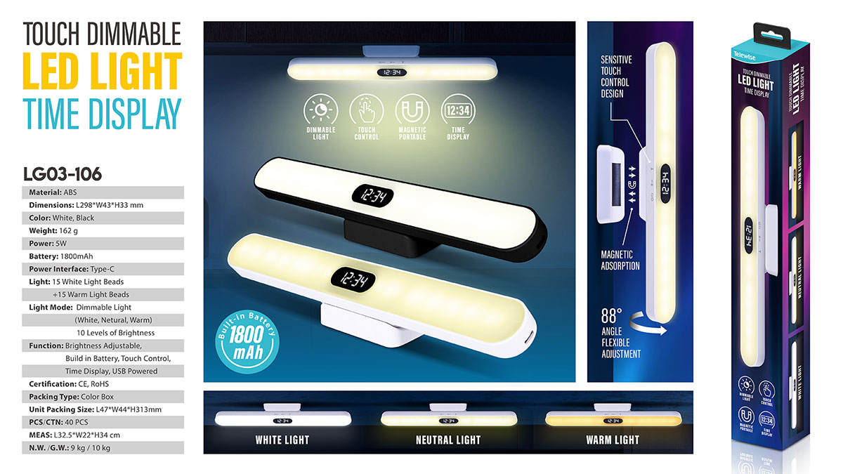 Touch Dimmable Magnetic LED Light With Time Display