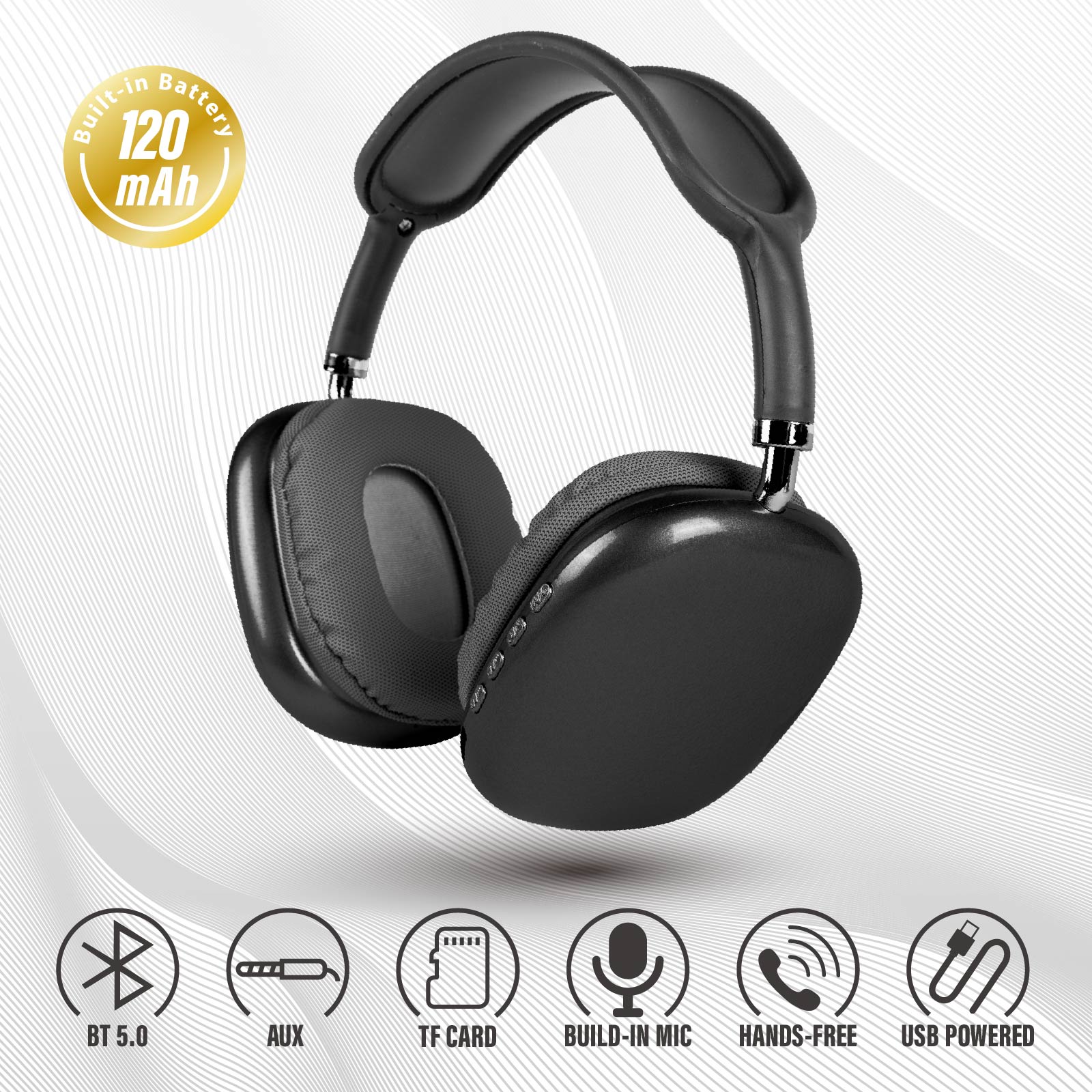 HP03-040Two earmuffs rotate independently on both sides to balance the pressure on the ears. It supports TF card music playback and can also be used as 3.5mm wired headphone. Bluetooth 5.0 chip provides wide compatibility, faster and more stable wireless connection.