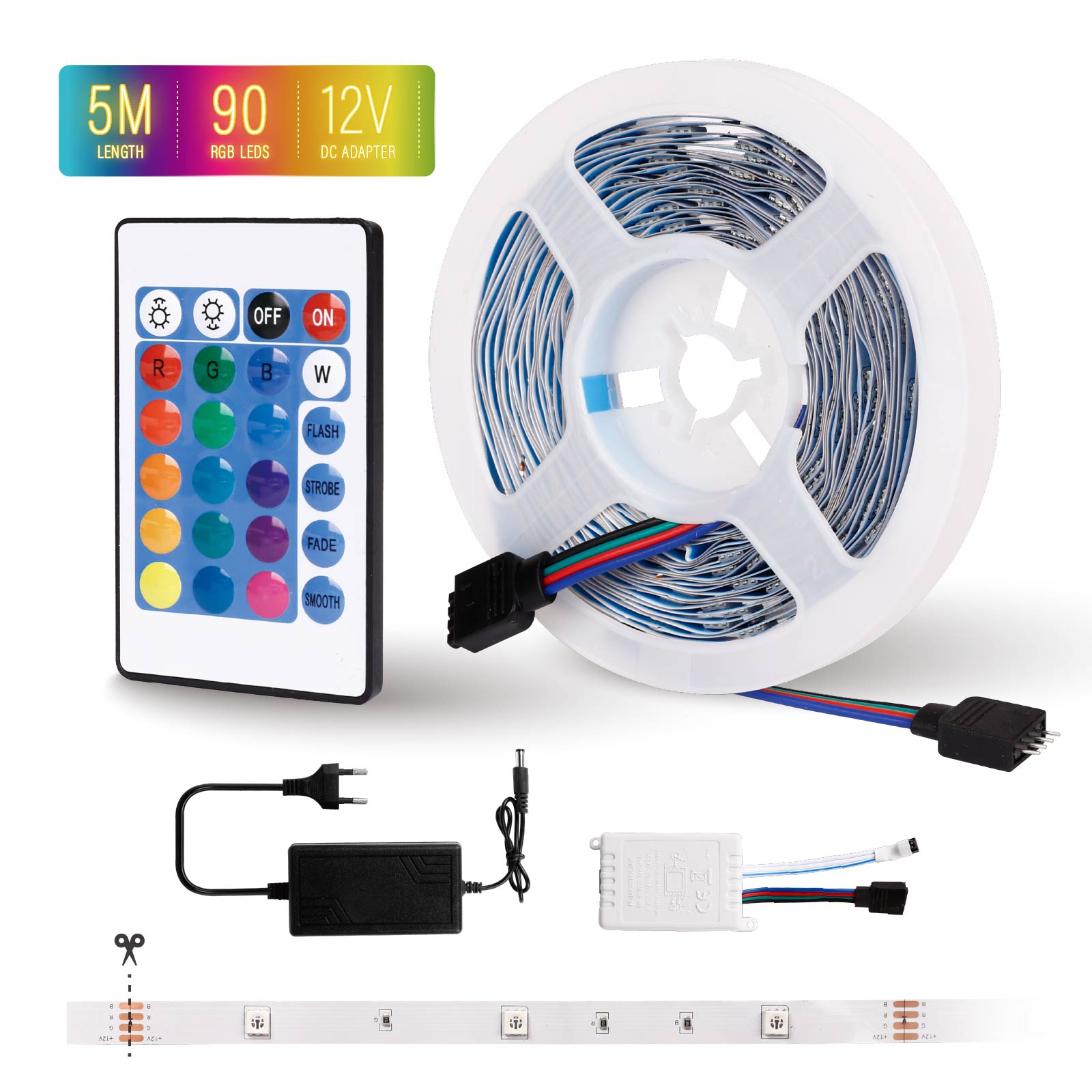 - Contents : Strip + 24-Key Remote Controller +12V Power Adapter + RGB Control Box