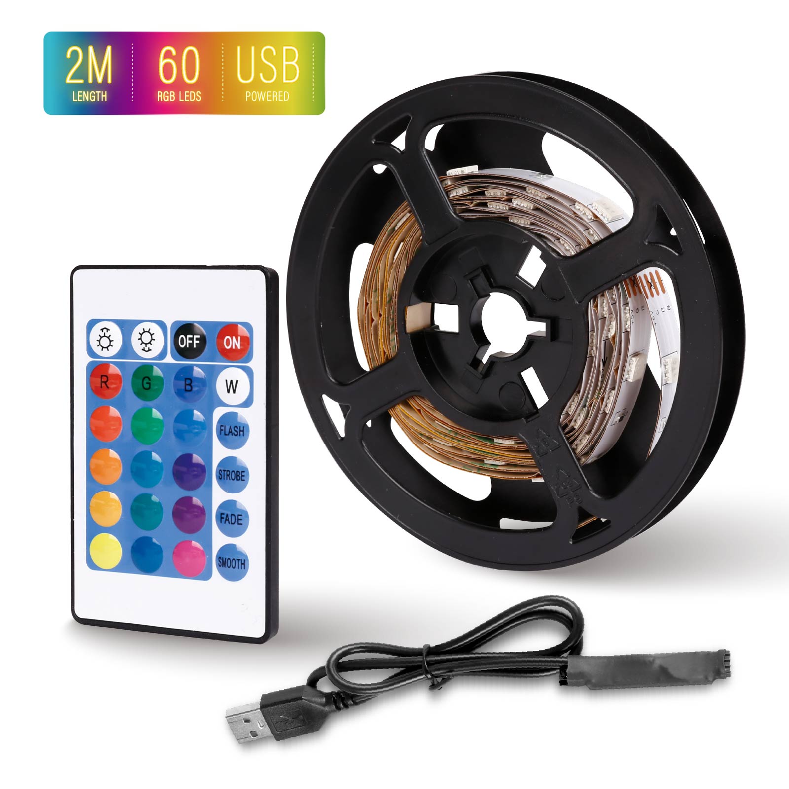 - Contents : Strip + 24-Key Remote Controller + USB Cable